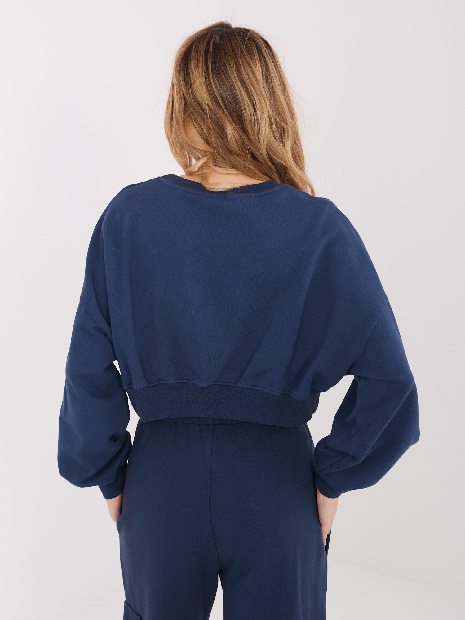Wymiary bluzy w rozmiarze one size mierzone na płasko: szerokość pod pachami - 59 cm, długość rękawa - 47 cm, szerokość na dole - 48 cm, długość całkowita - 41 cm.