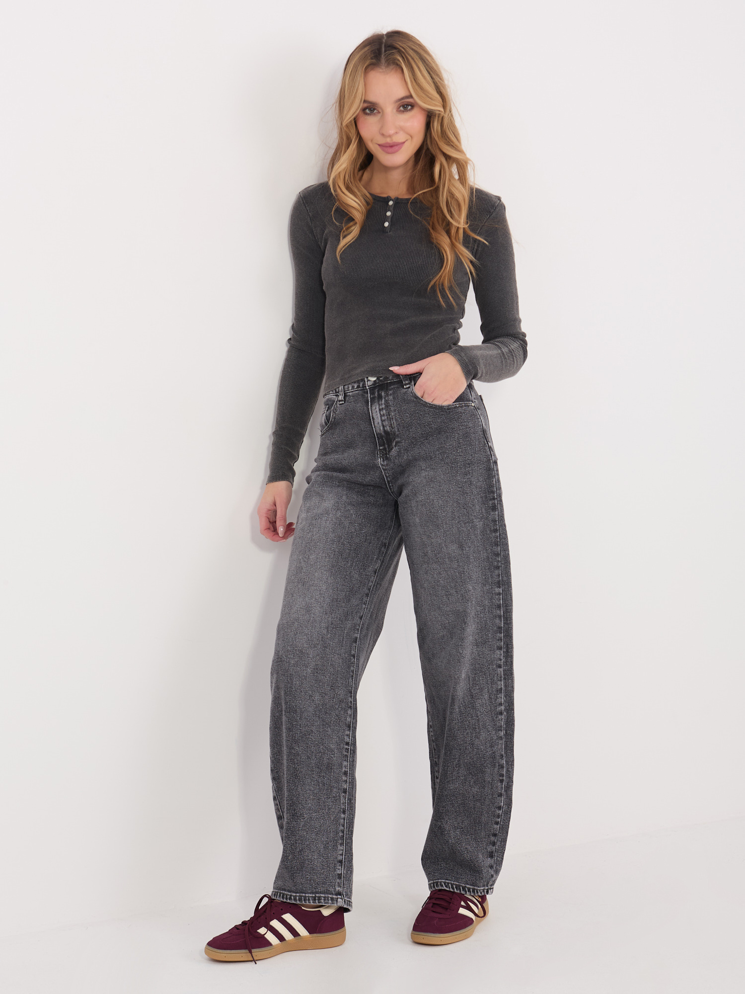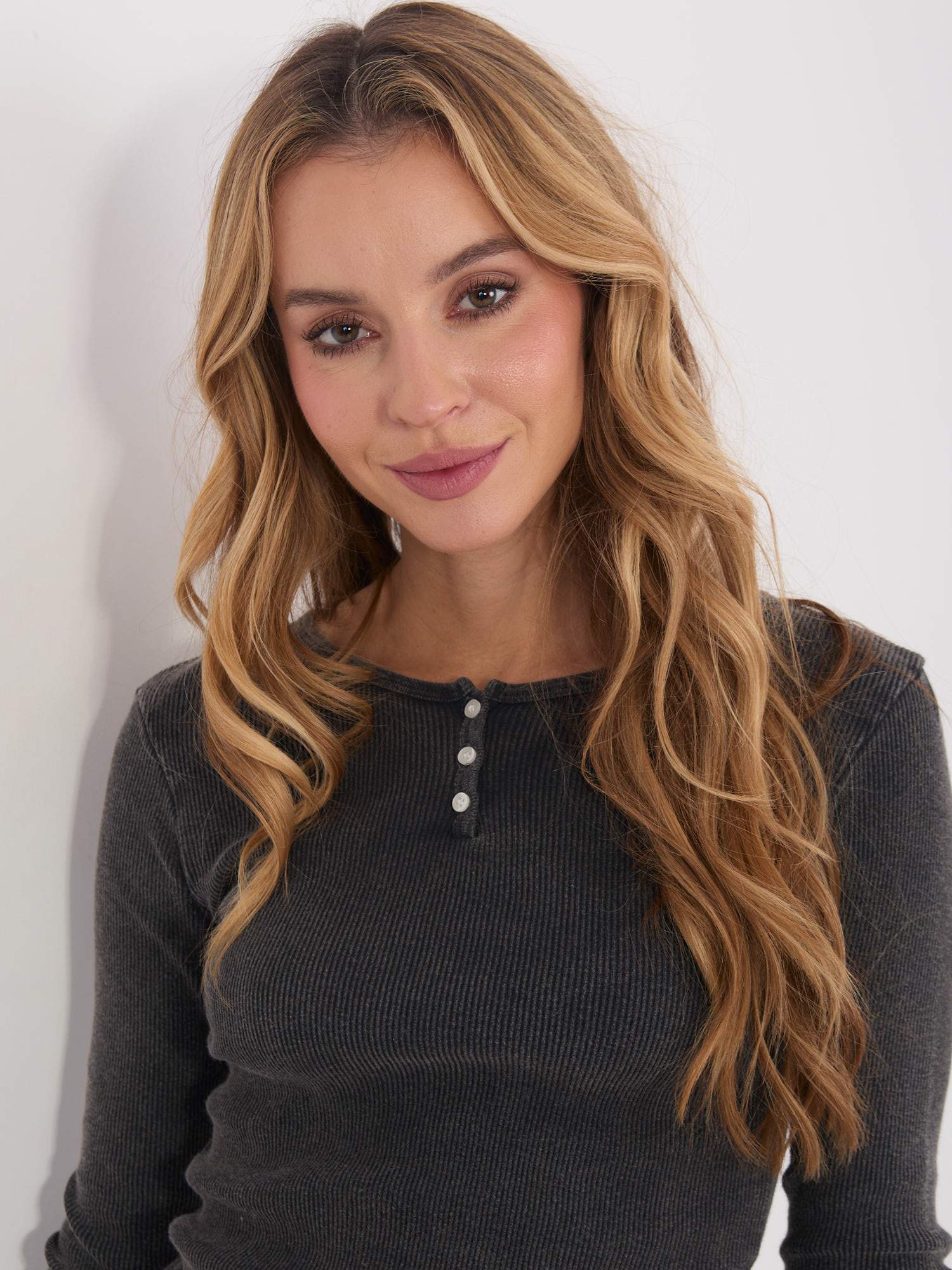 Wymiary bluzki w rozmiarze one size mierzone na płasko: szerokość pod pachami - 38 cm, długość całkowita - 48 cm, długość rękawa - 62 cm (od szwu), szerokość na dole - 36 cm (materiał rozciągliwy).