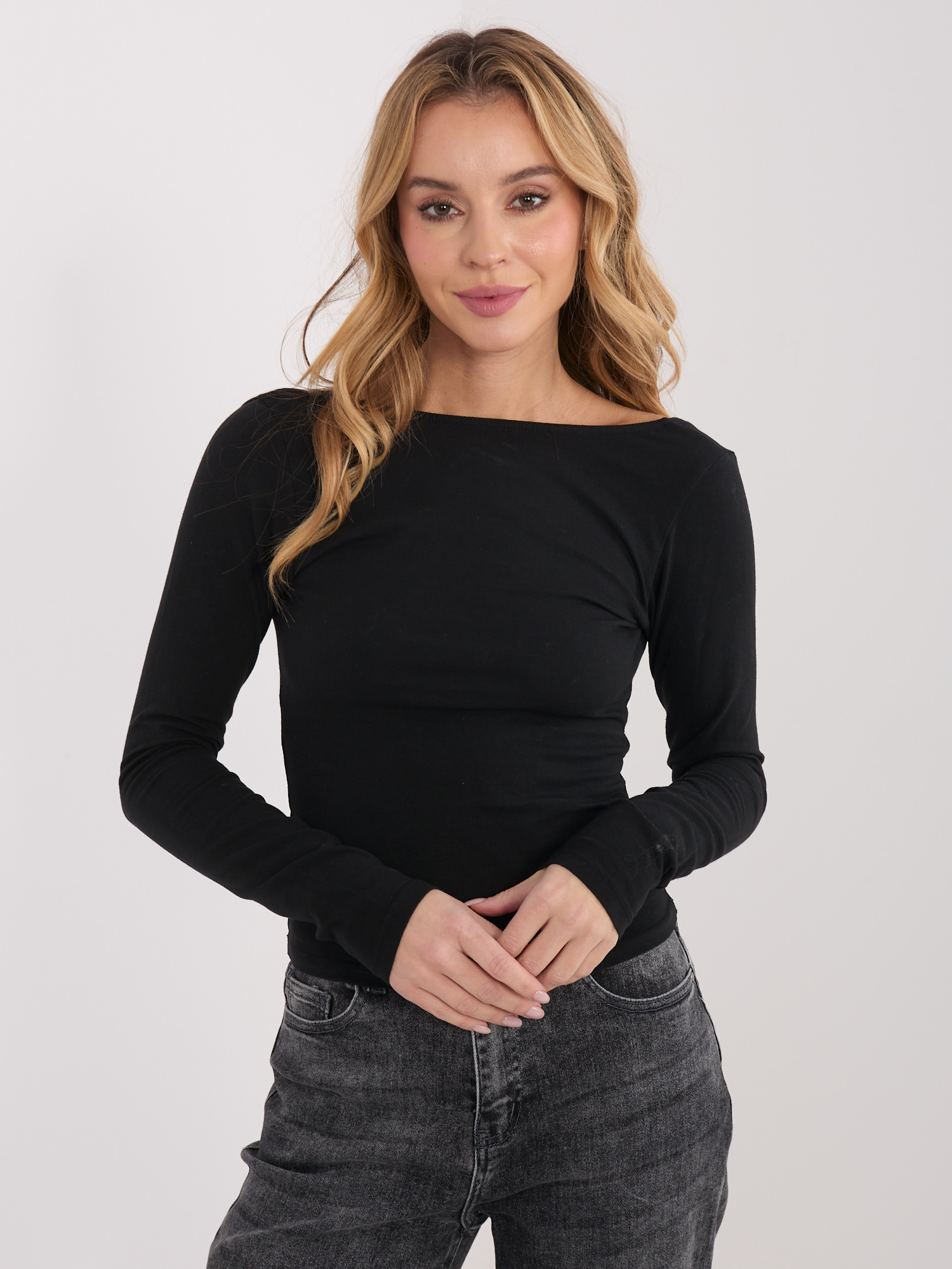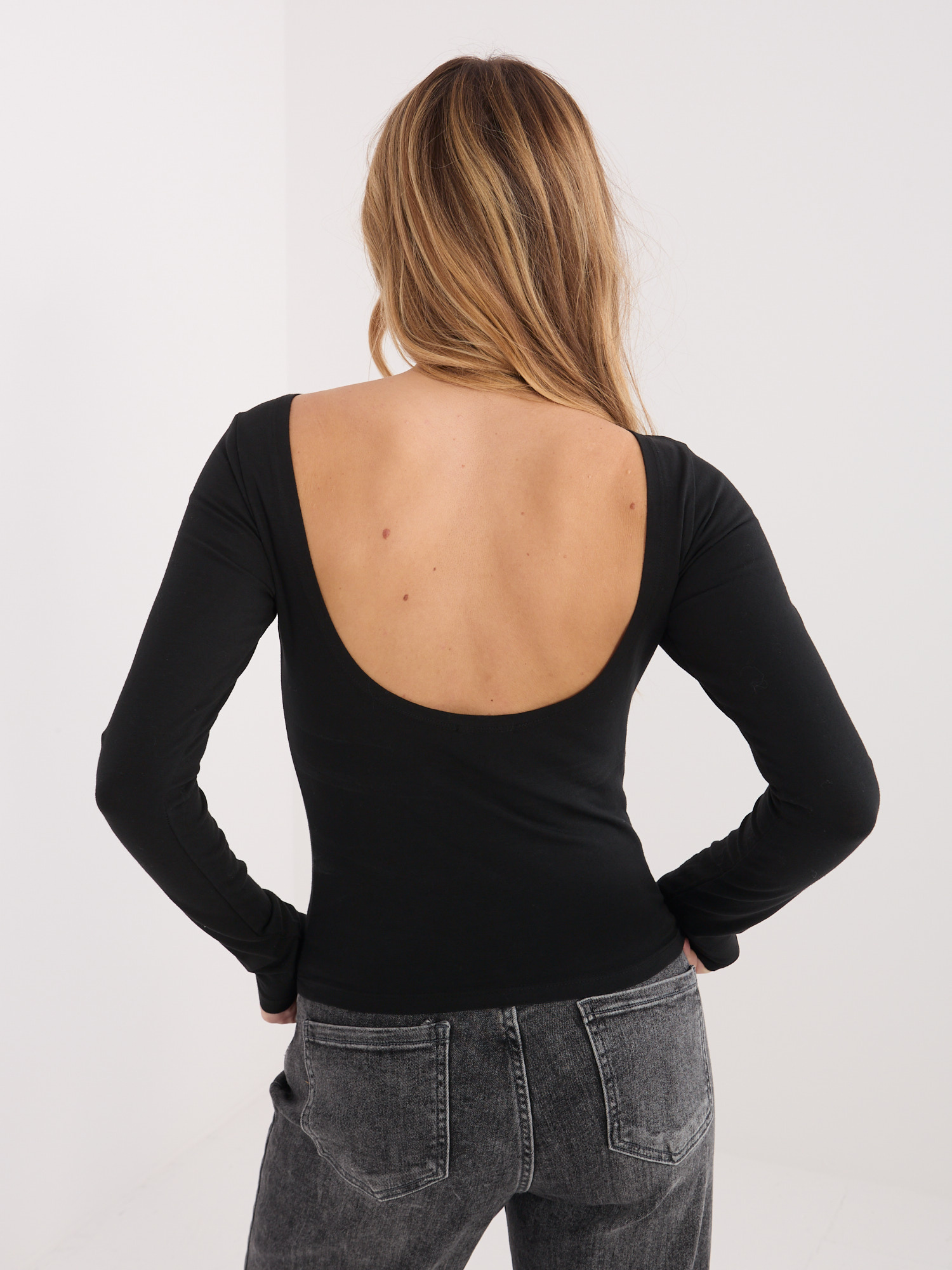 Czarna bluzka basic z dekoltem na plecach