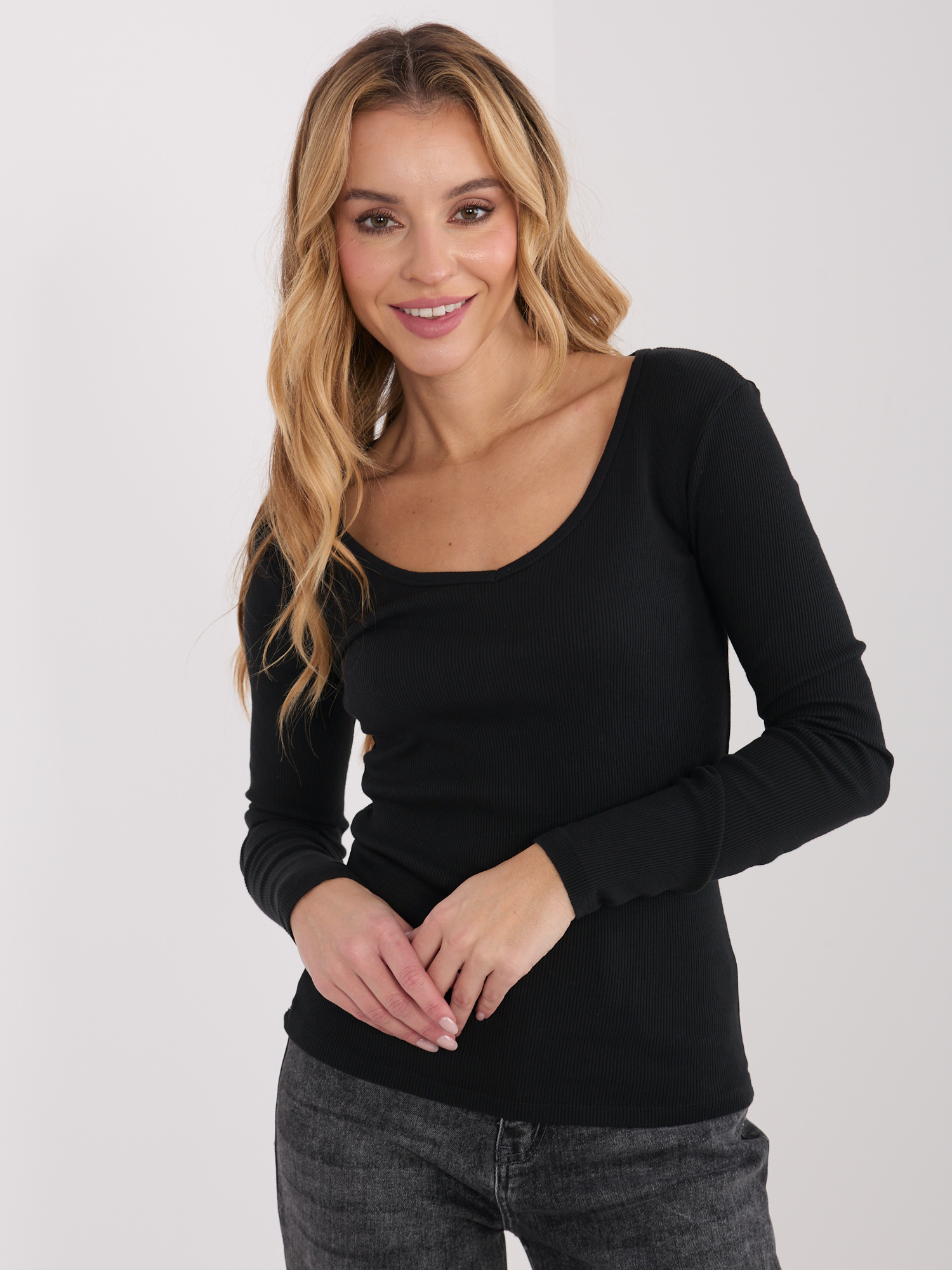 Czarny longsleeve basic w prążki