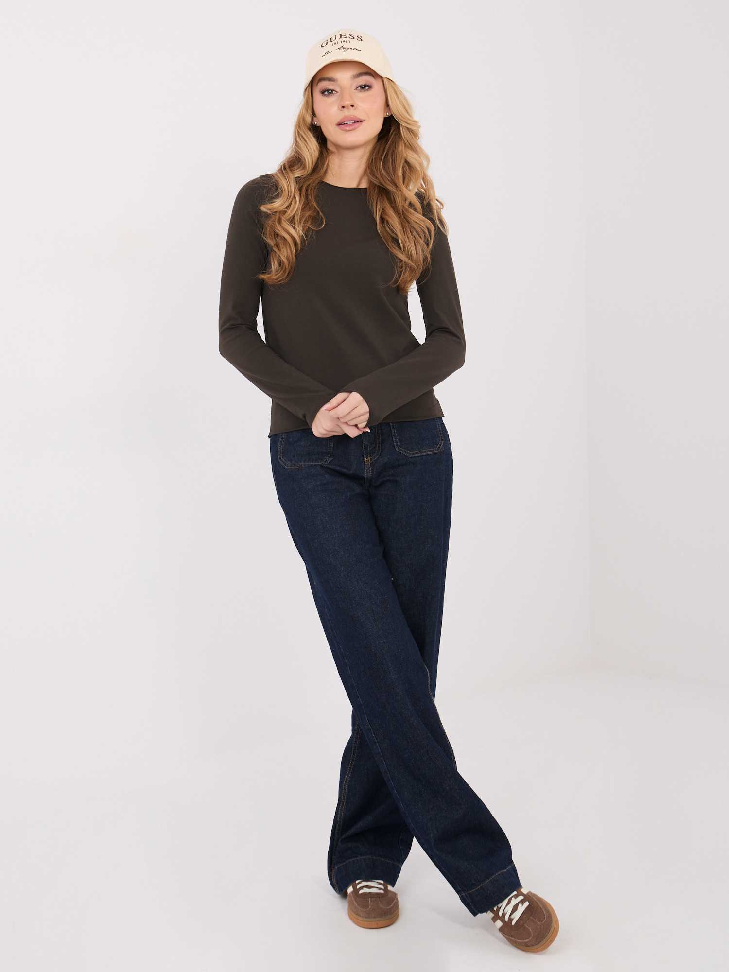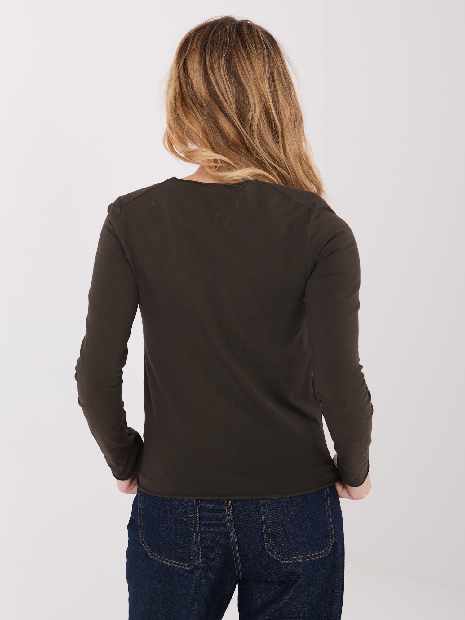 Czekoladowa damska bluzka basic z bawełny