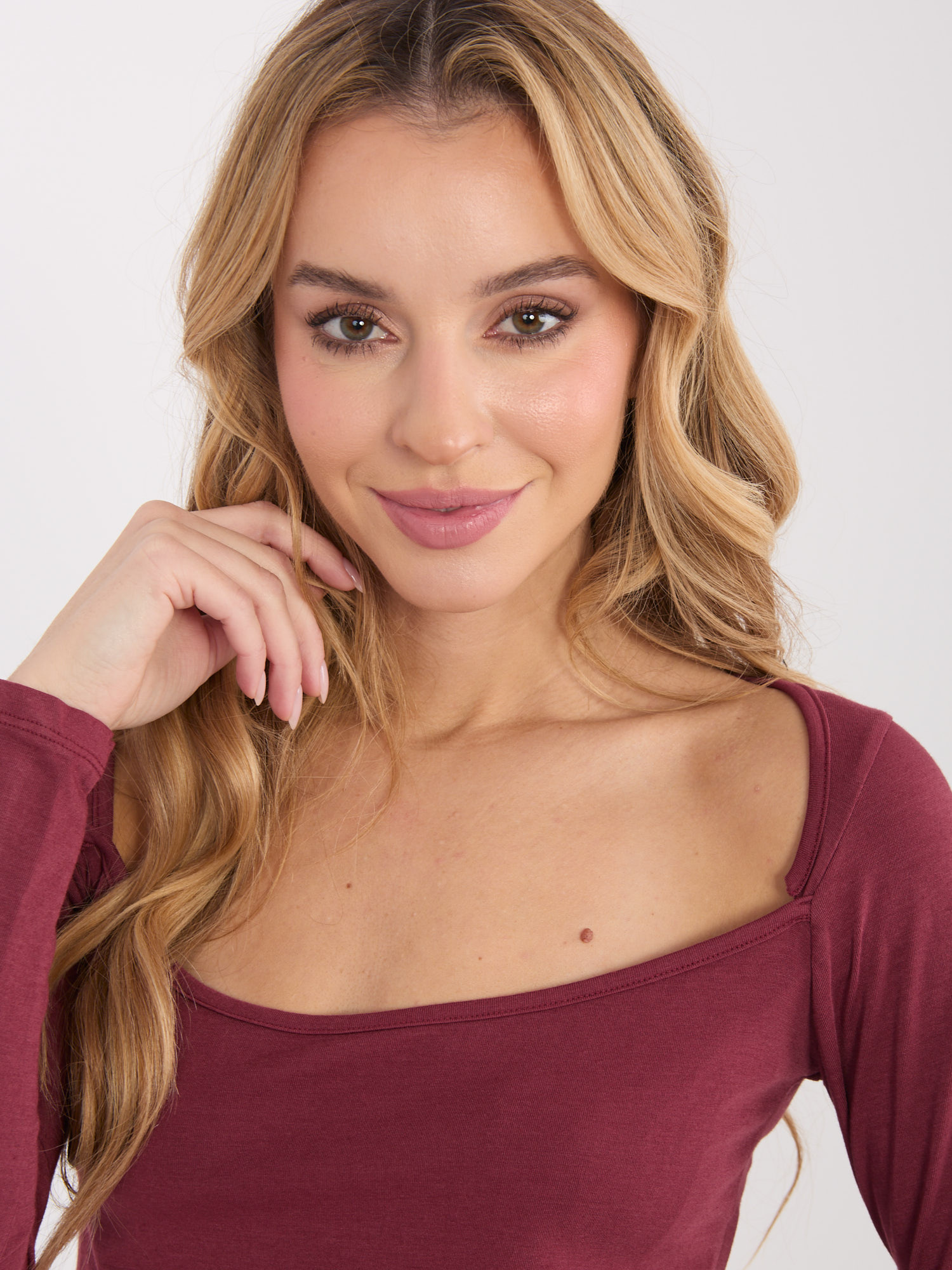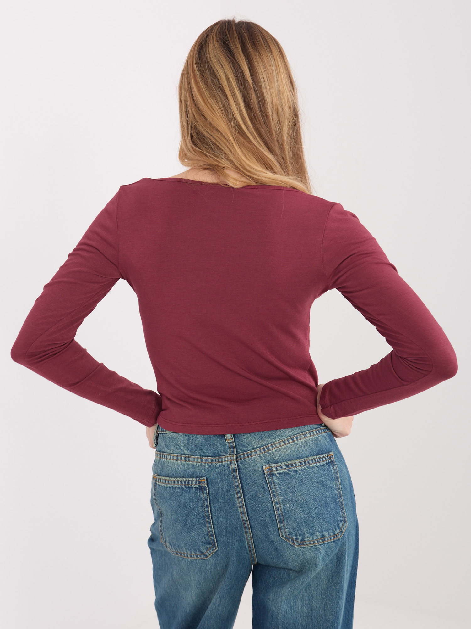 Bordowa bluzka basic z prostokątnym dekoltem