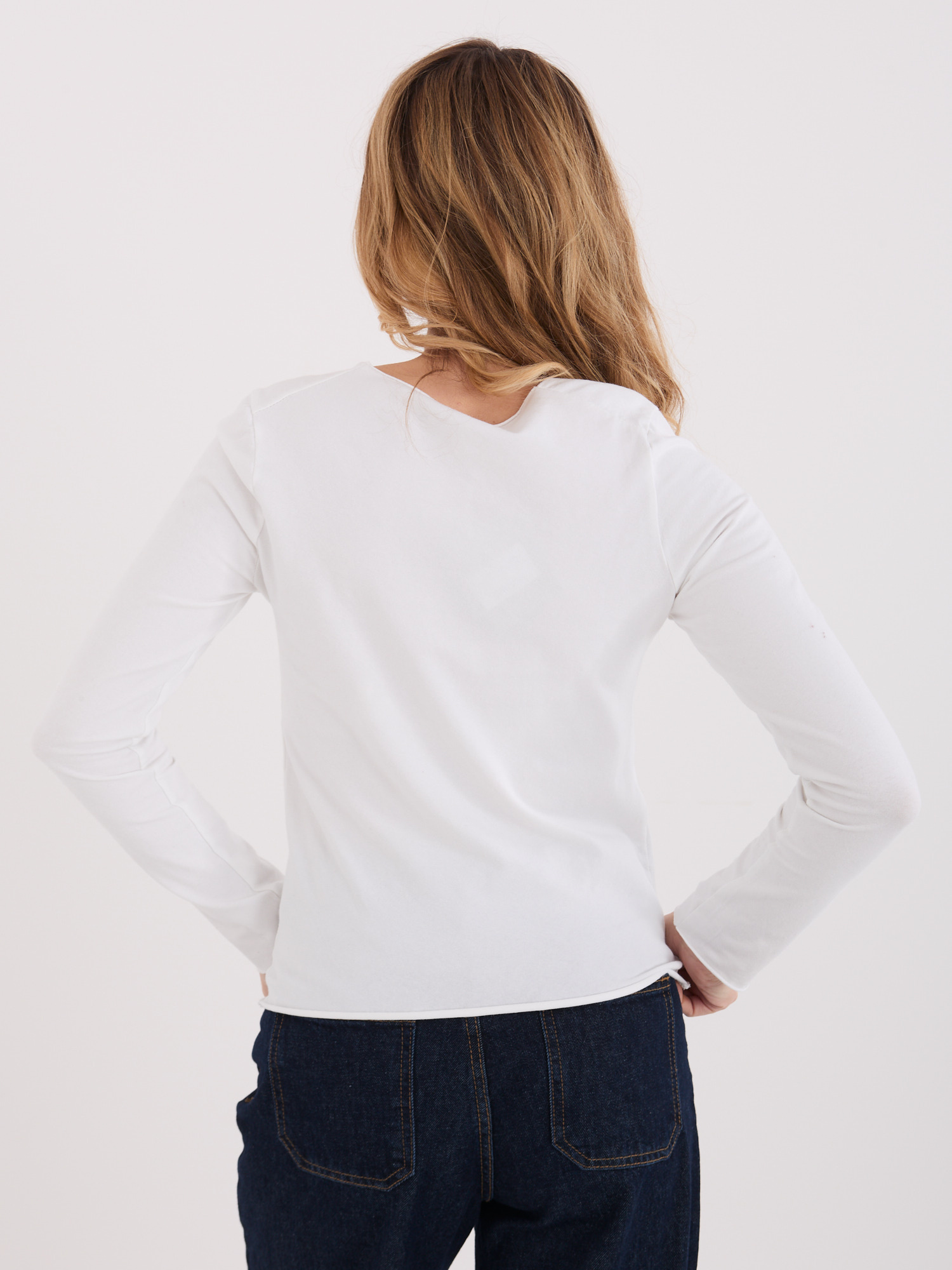Ecru damski longsleeve basic z bawełny
