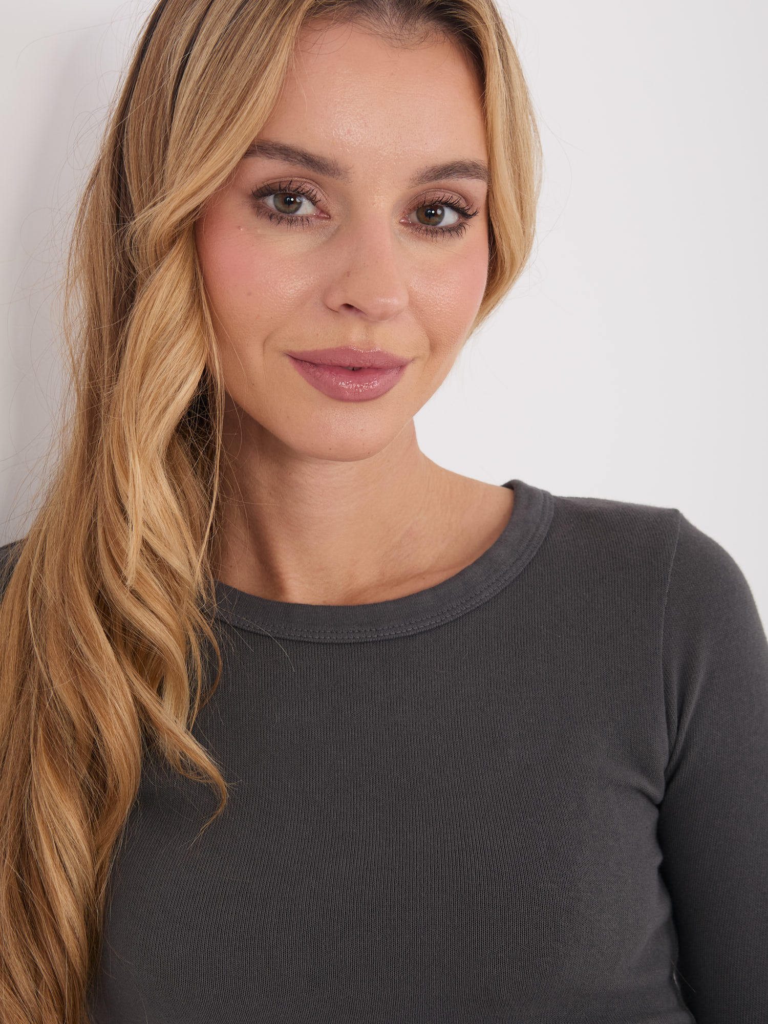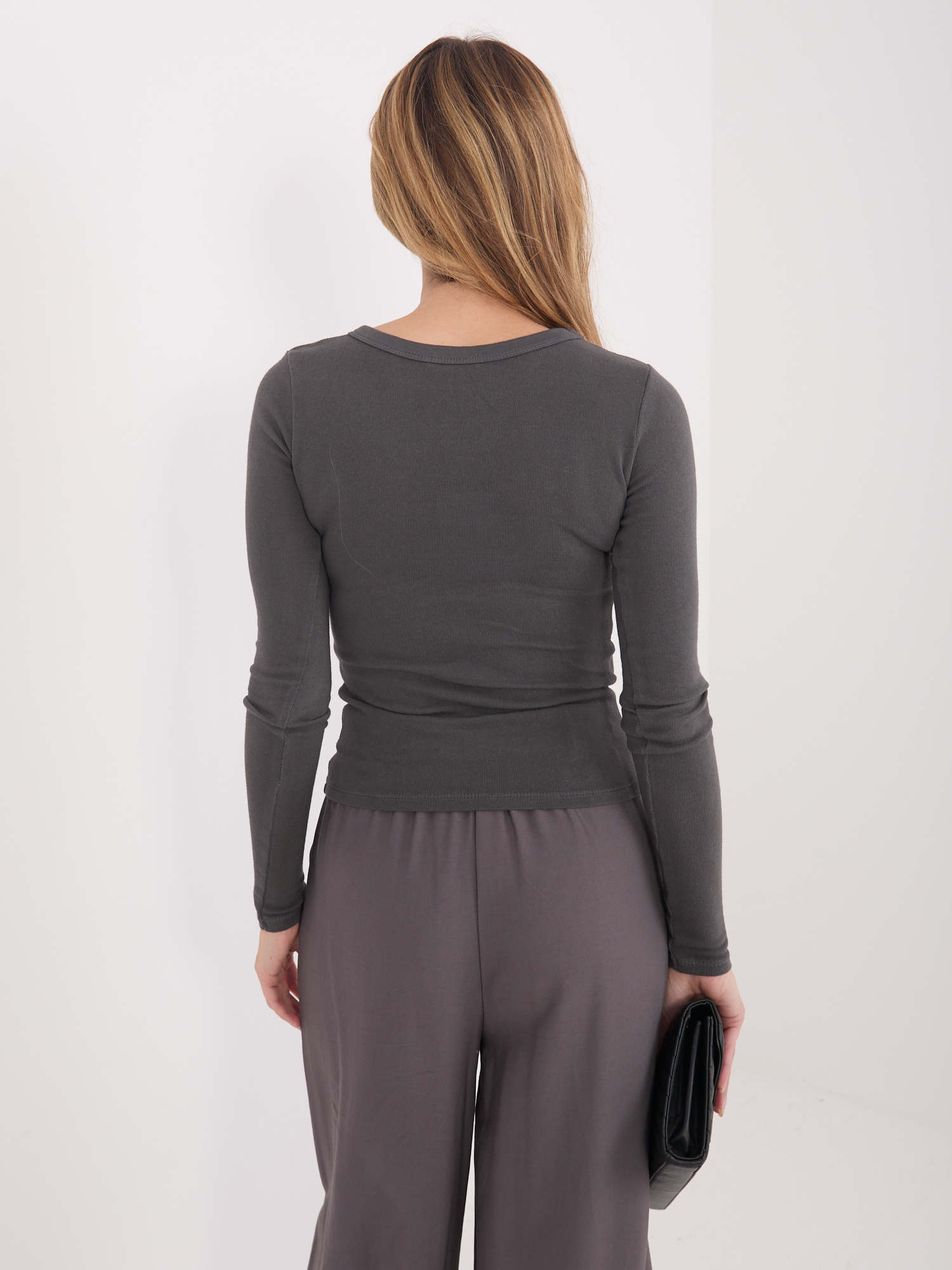 Grafitowy longsleeve z okrągłym dekoltem