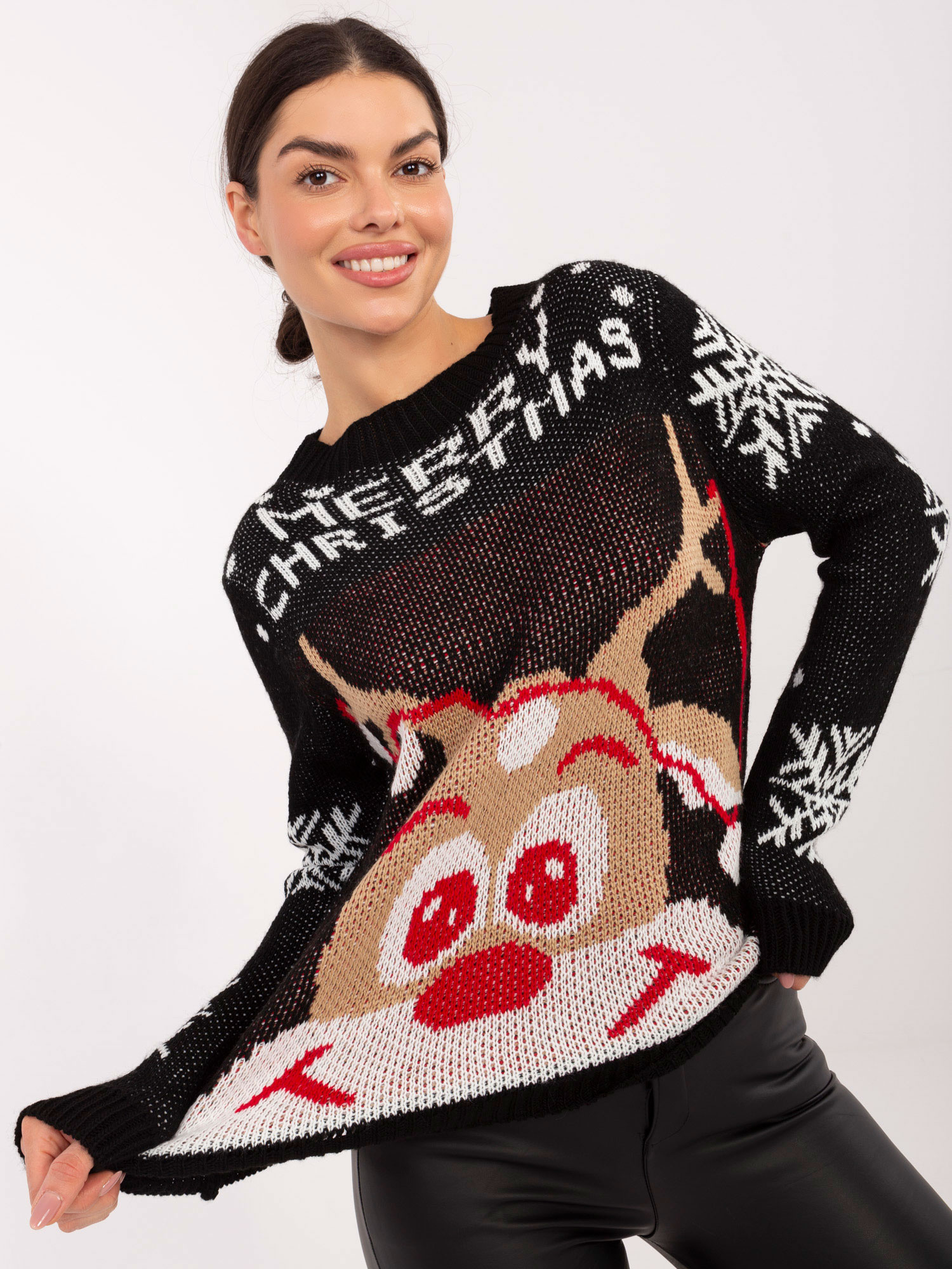 Wymiary swetra w rozmiarze one size mierzone na płasko: szerokość pod pachami - 51 cm, szerokość w biodrach - 46 cm, długość rękawa - 62 cm (od szwu), długość całkowita - 62 cm.