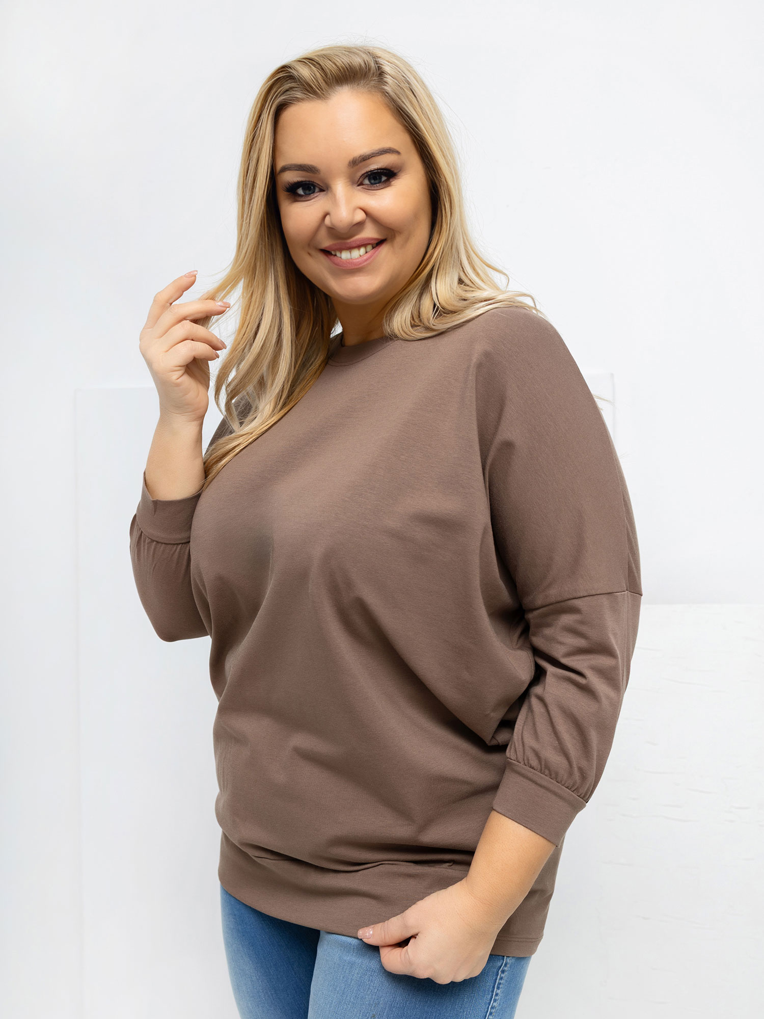 Wymiary bluzki w rozmiarze one size mierzone na płasko: bluzka: szerokość pod pachami - 79 cm, długość rękawa - 24 cm (od szwu), długość całkowita - 72 cm, szerokość na dole - 57 cm.