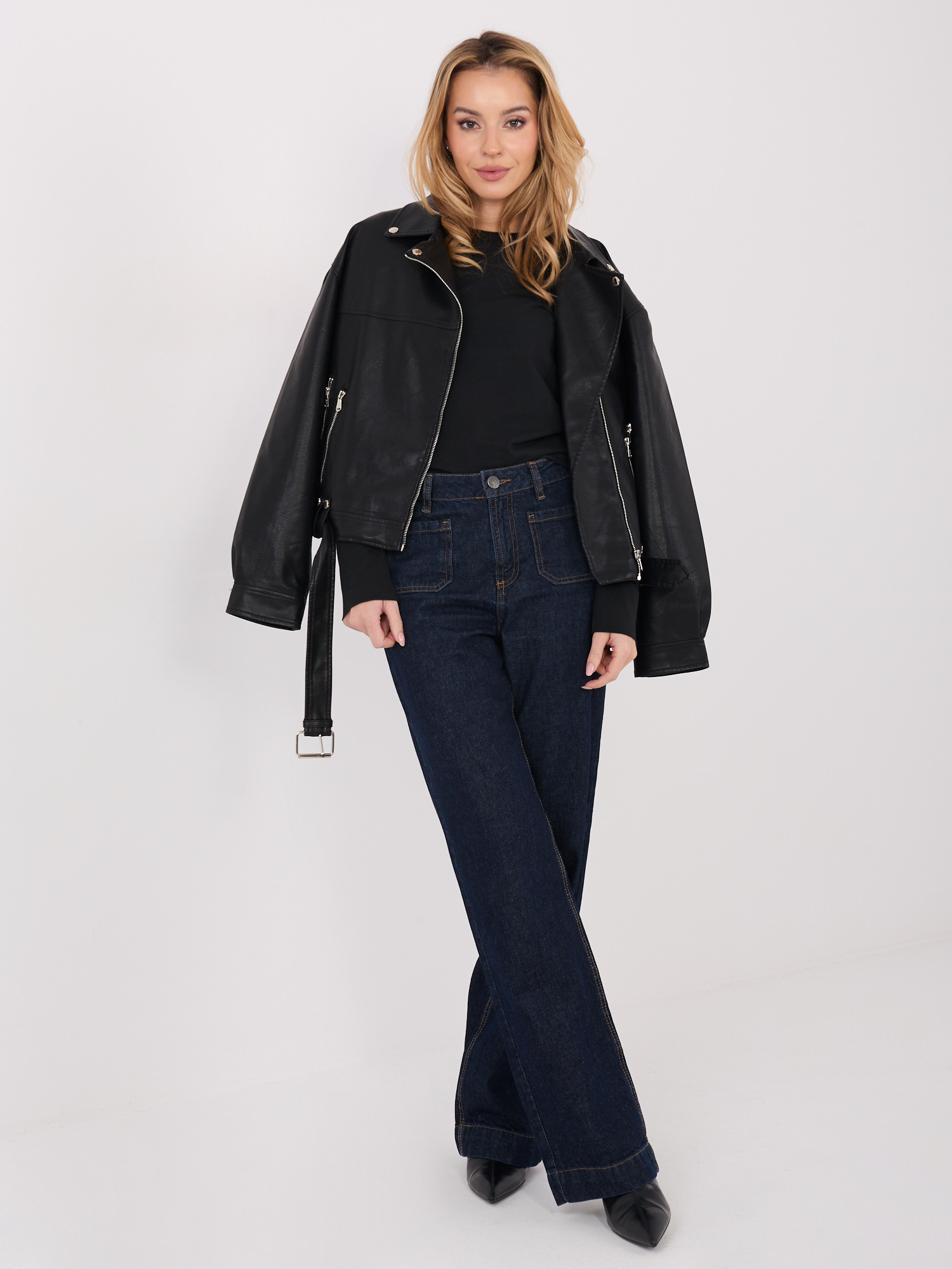 Modelka ma na sobie rozmiar one size. Wymiary modelki: wzrost 169 cm, biust 88 cm, talia 68 cm, biodra 89 cm .