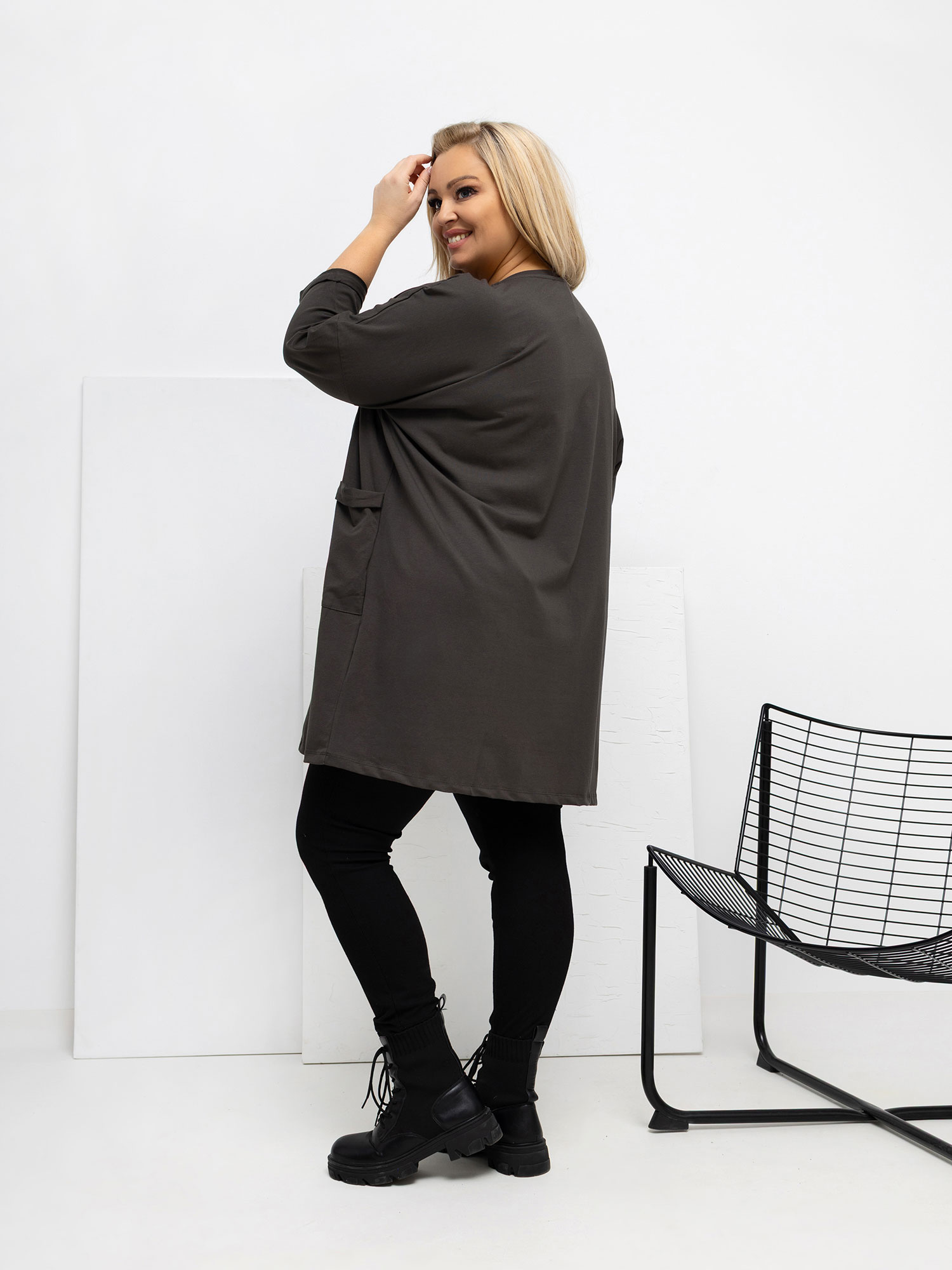 Khaki długa bluzka plus size z rękawem 3/4 .
