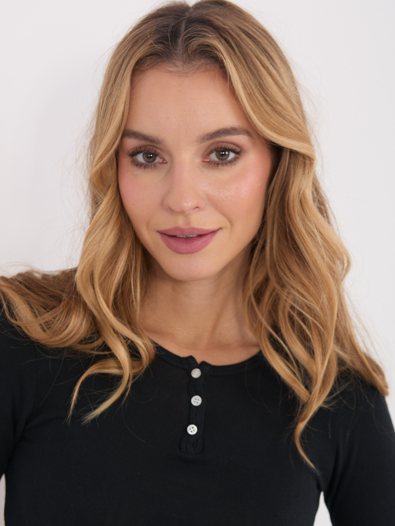 Czarna bluzka basic z guzikami przy dekolcie