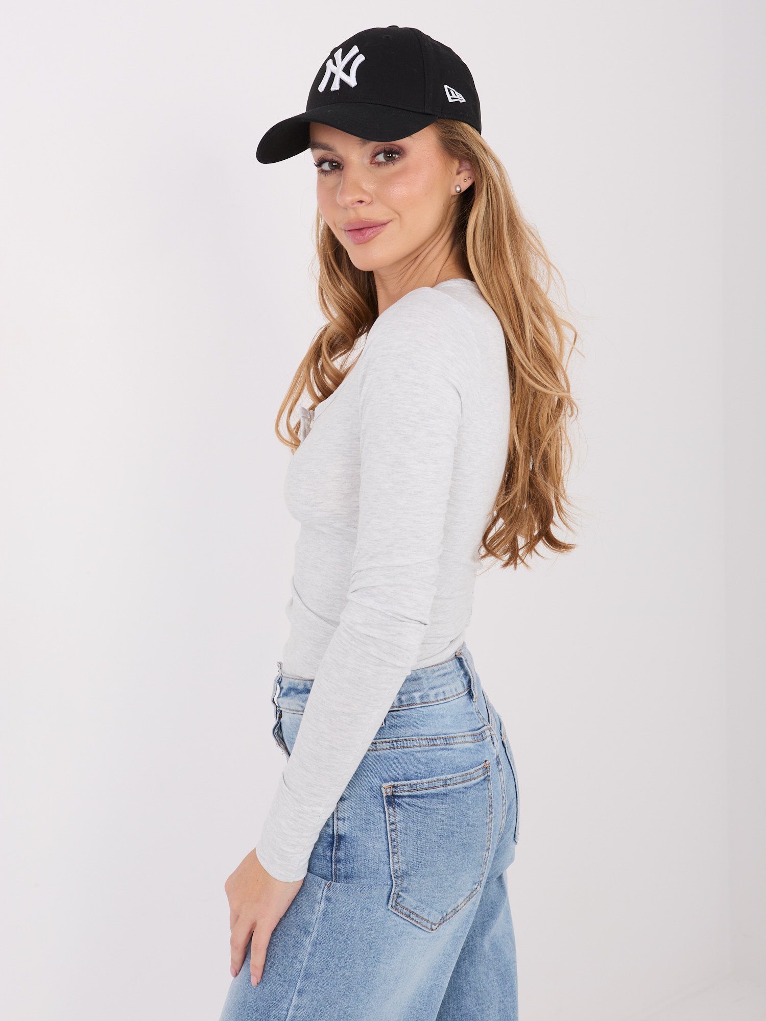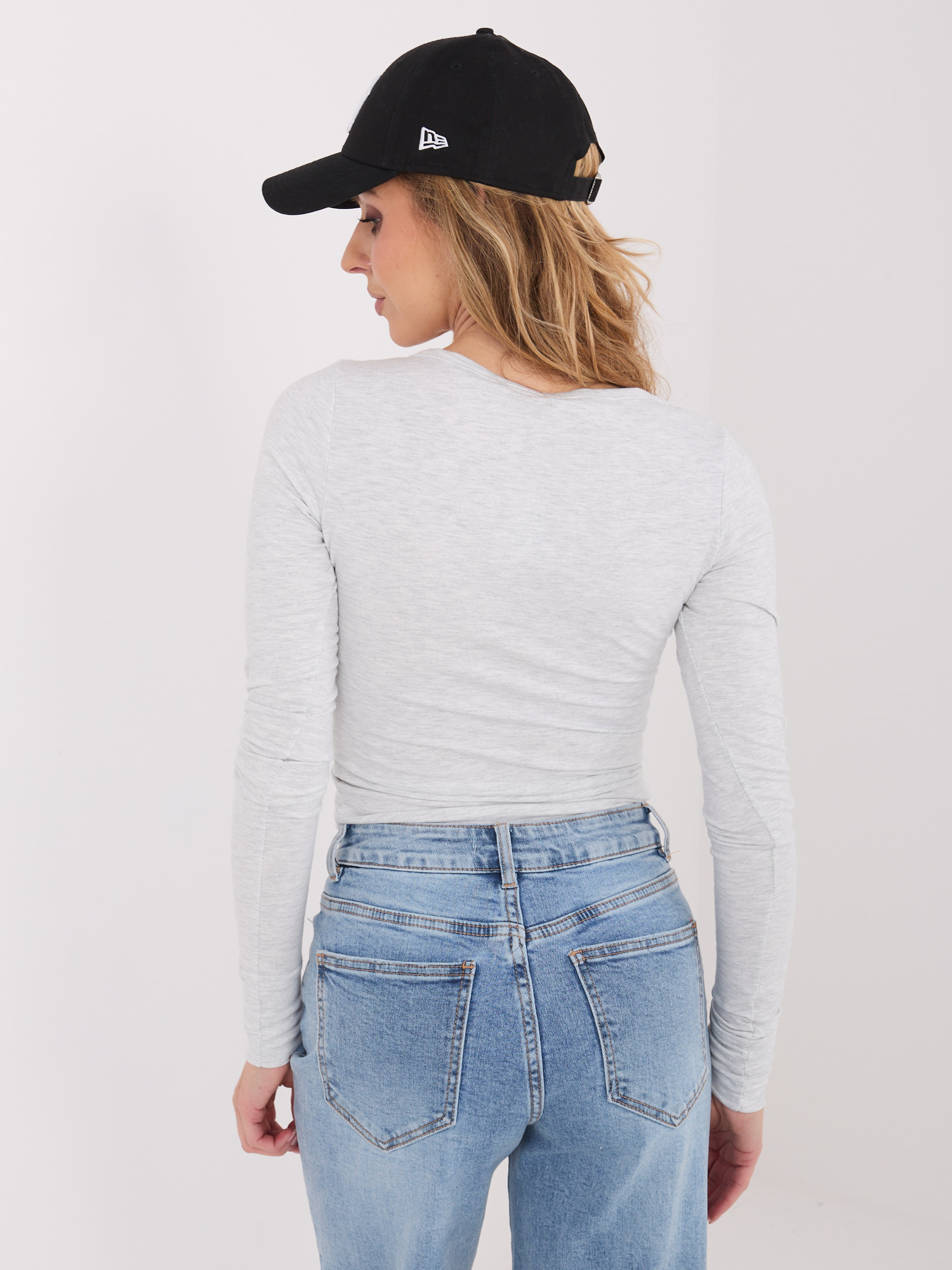 Jasnoszara bluzka basic z długim rękawem