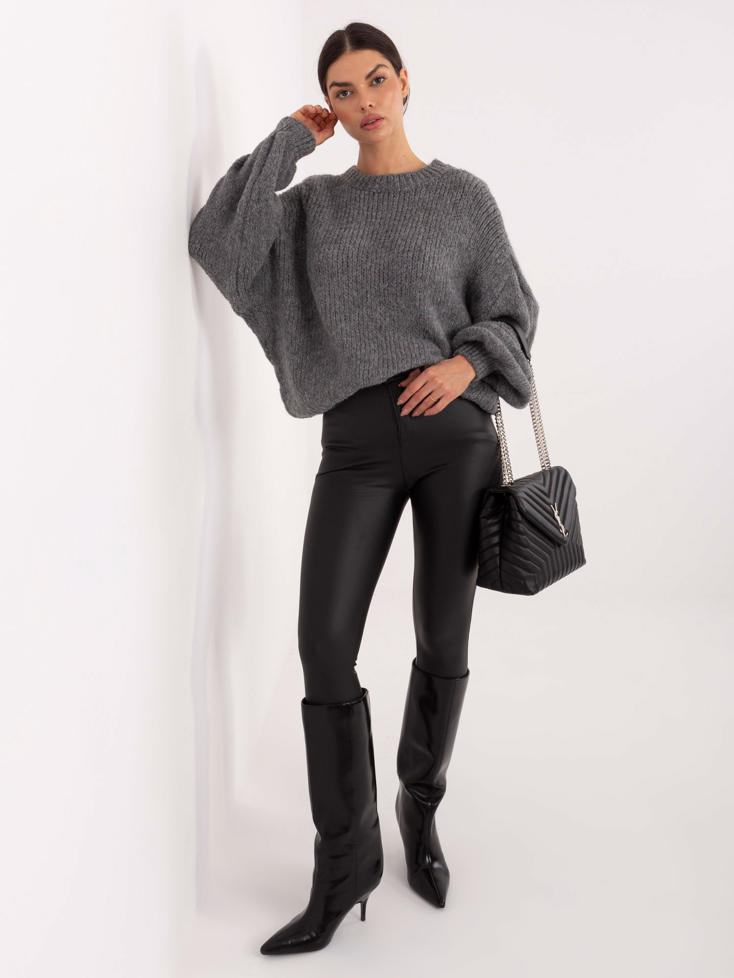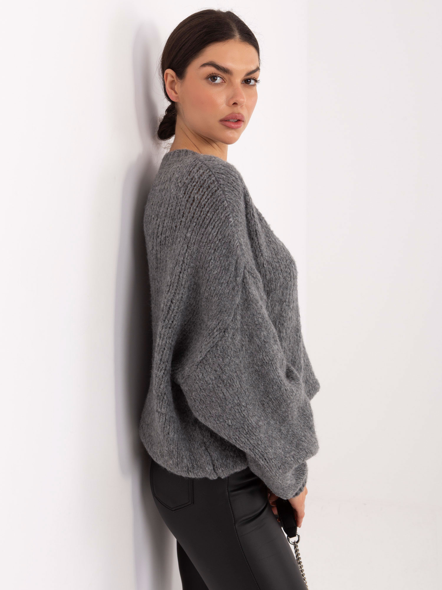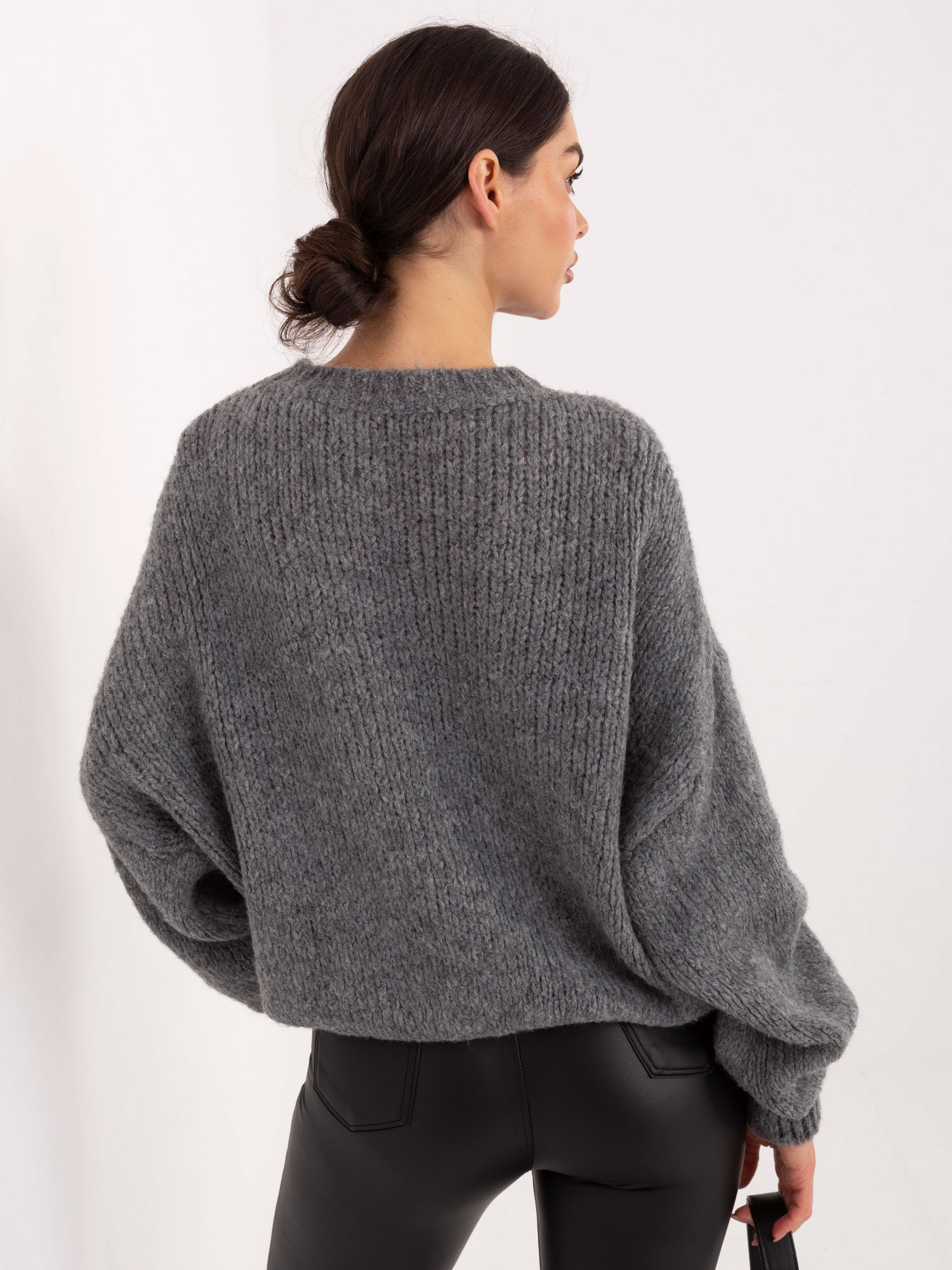 Ciemnoszary damski sweter z okrągłym dekoltem