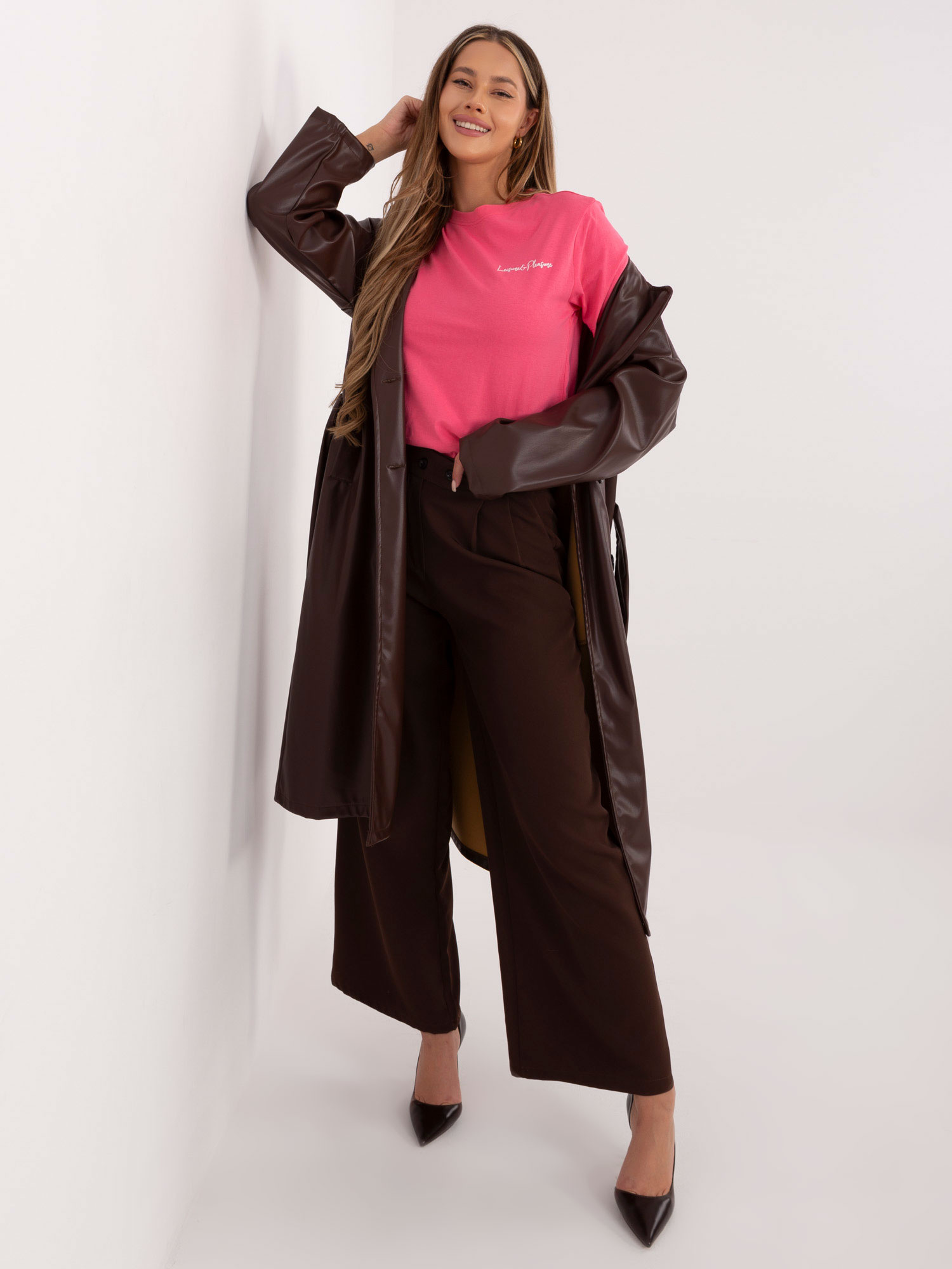 Modelka ma na sobie rozmiar S. Wymiary modelki: wzrost 176 cm, biust 90 cm, talia 62 cm, biodra 94 cm.