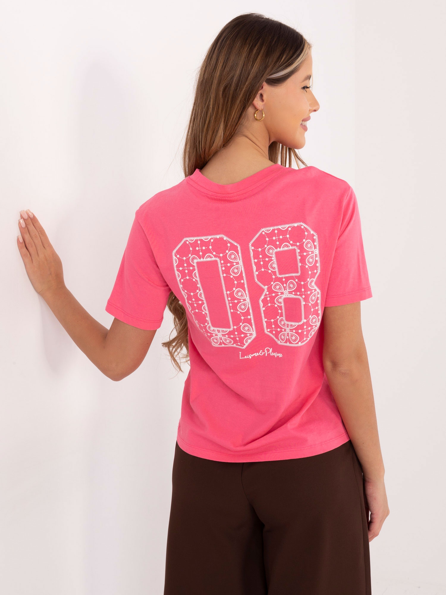 Różowy t-shirt z nadrukiem na plecach SUBLEVEL .
