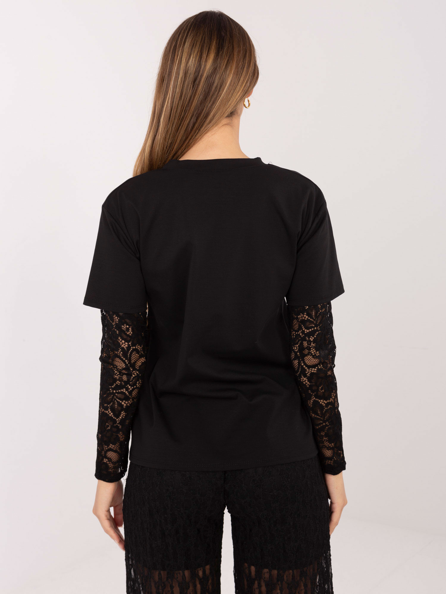 Wymiary bluzki w rozmiarze one size mierzone na płasko: szerokość pod pachami - 64 cm, długość całkowita - 75 cm (przód), długość całkowita - 84 cm (tył), szerokość w biodrach - 76 cm, długość rękawa - 48 cm (od szwu).