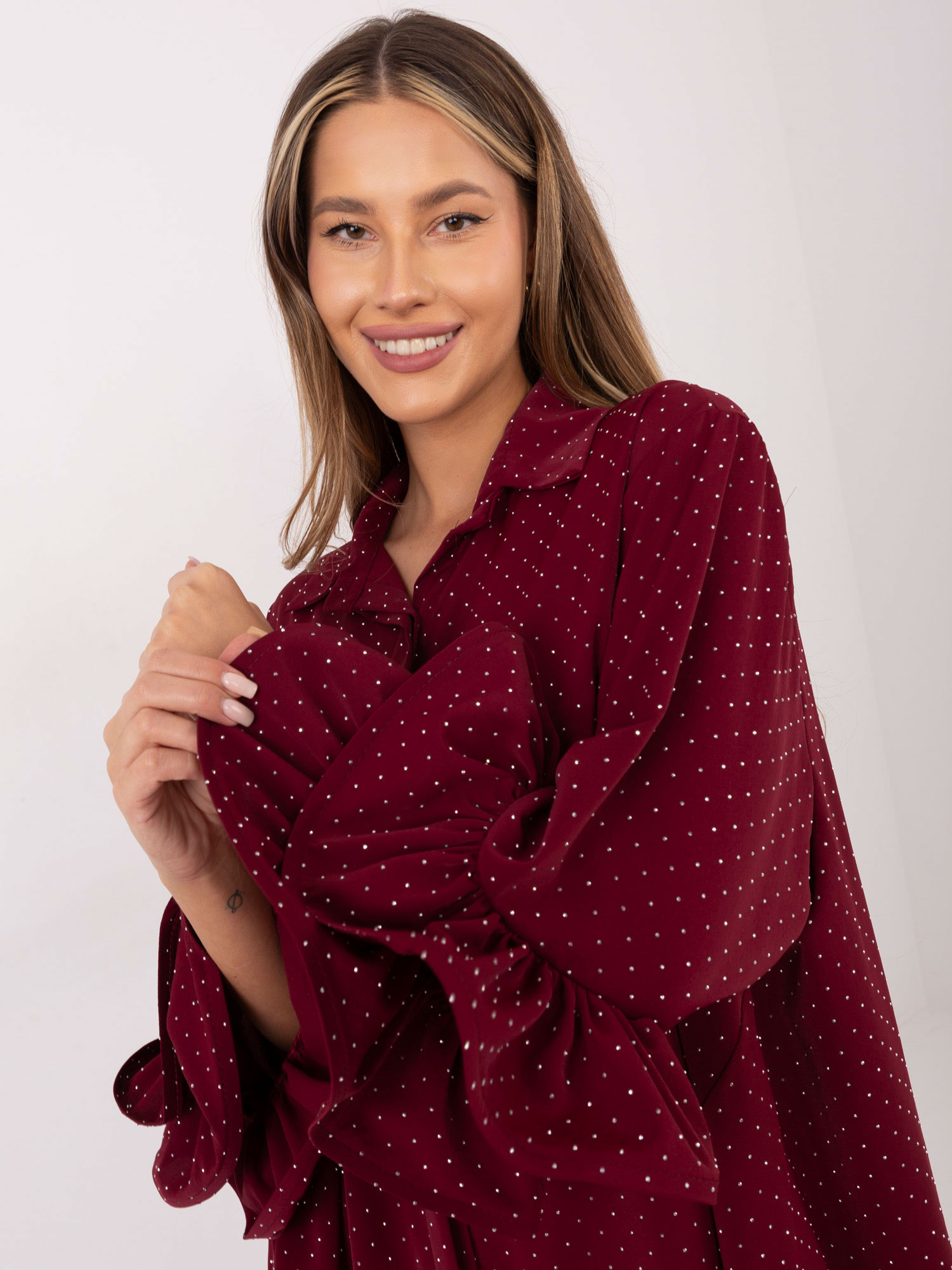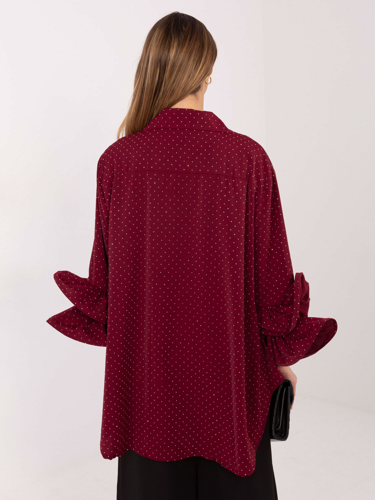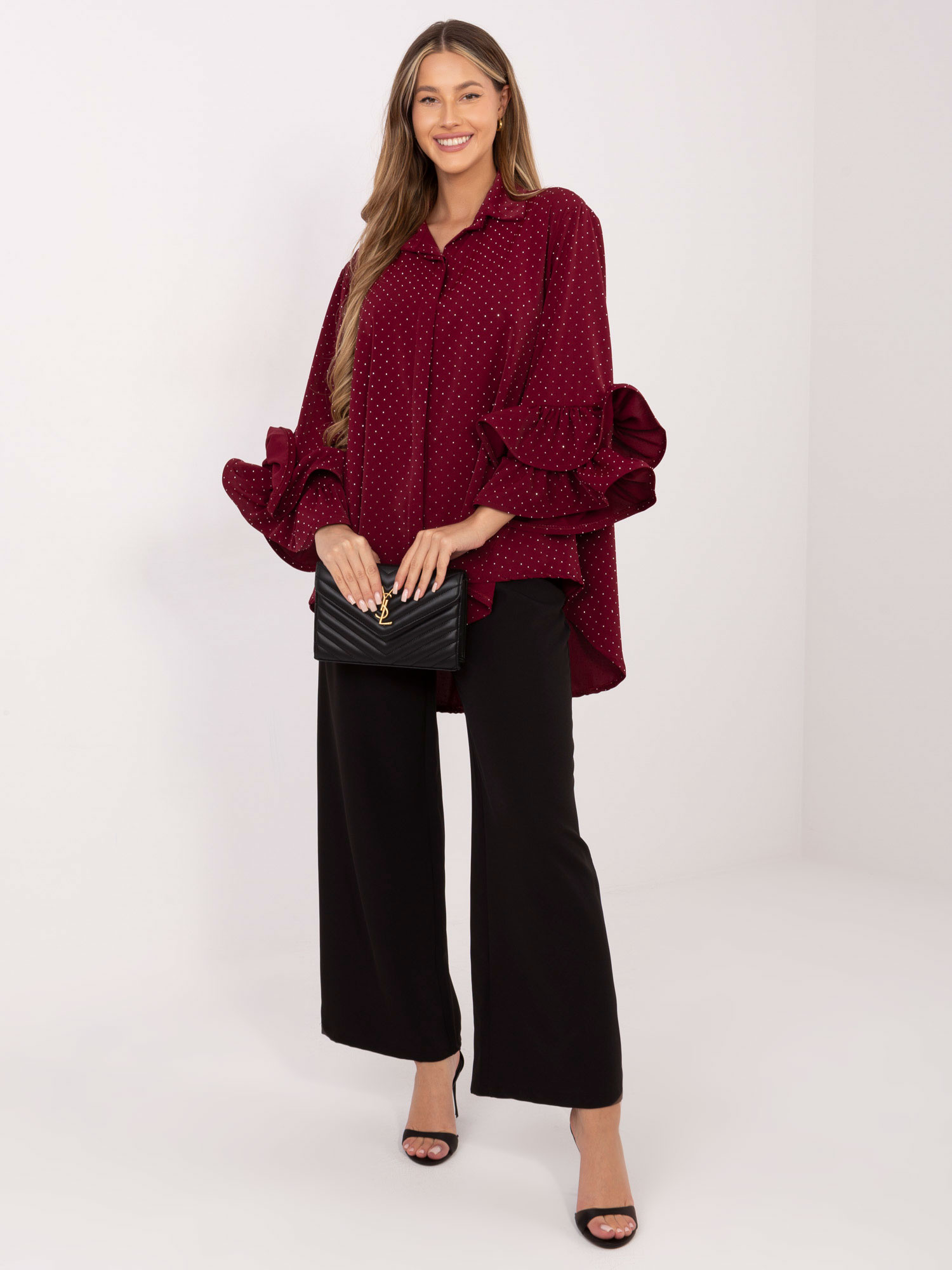 Wymiary koszuli w rozmiarze one size mierzone na płasko: szerokość pod pachami - 64 cm, długość całkowita - 75 cm (przód), długość całkowita - 84 cm (tył), szerokość w biodrach - 76 cm, długość rękawa - 48 cm (od szwu).