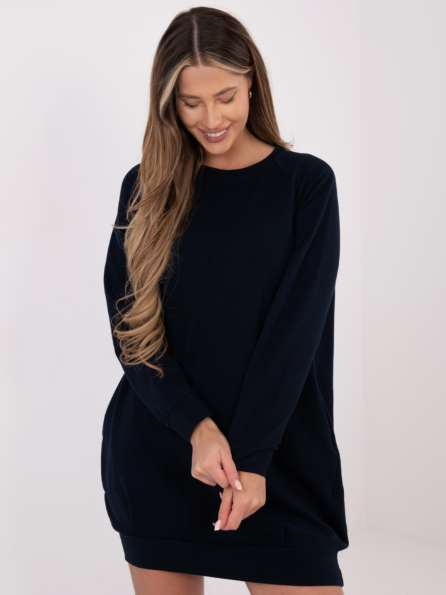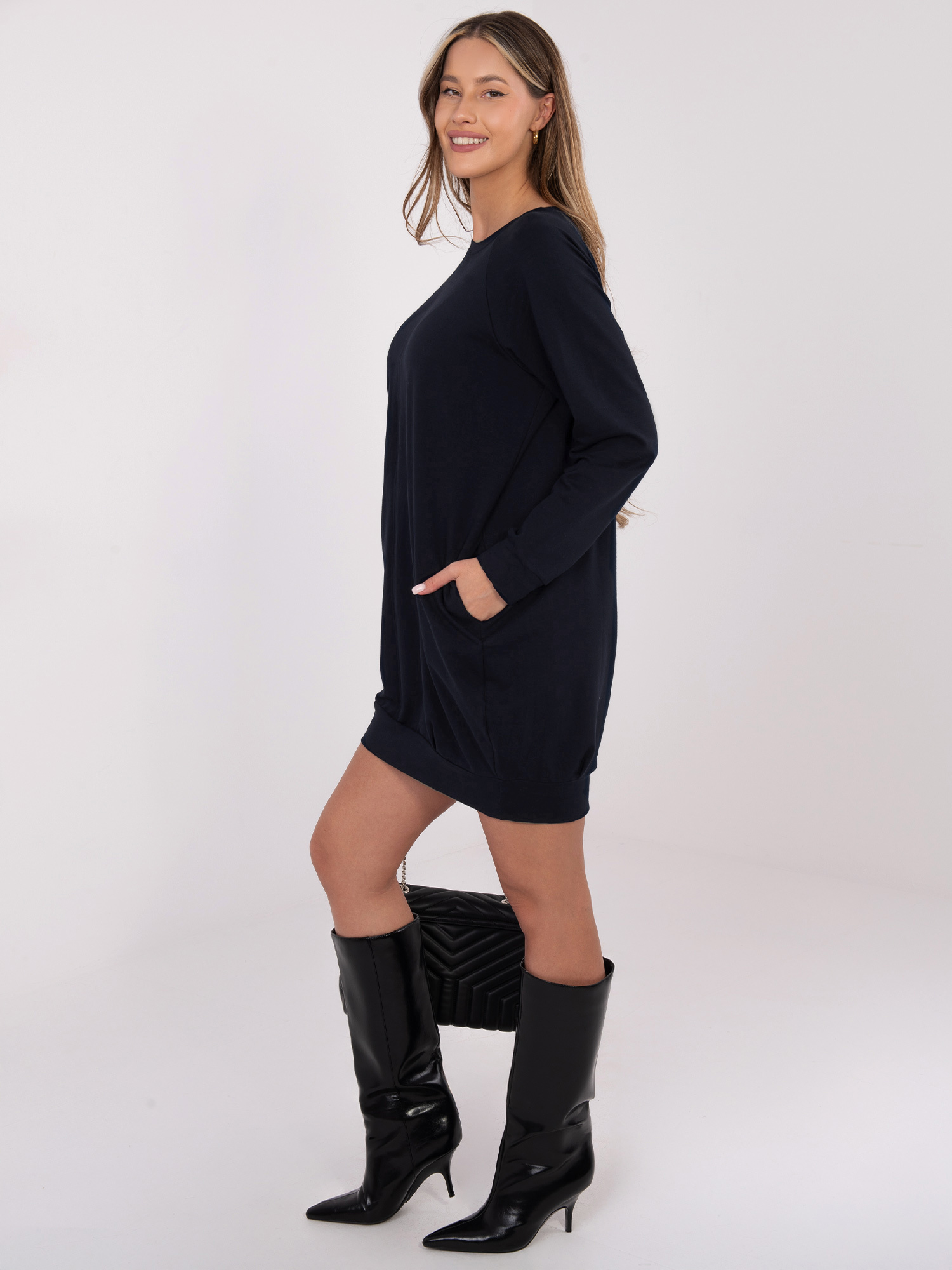 Granatowa dresowa sukienka z kieszeniami BASIC FEEL GOOD .