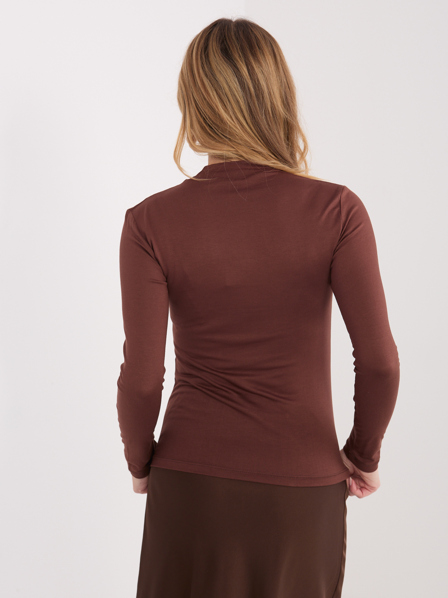 Brązowa dopasowana bluzka z półgolfem