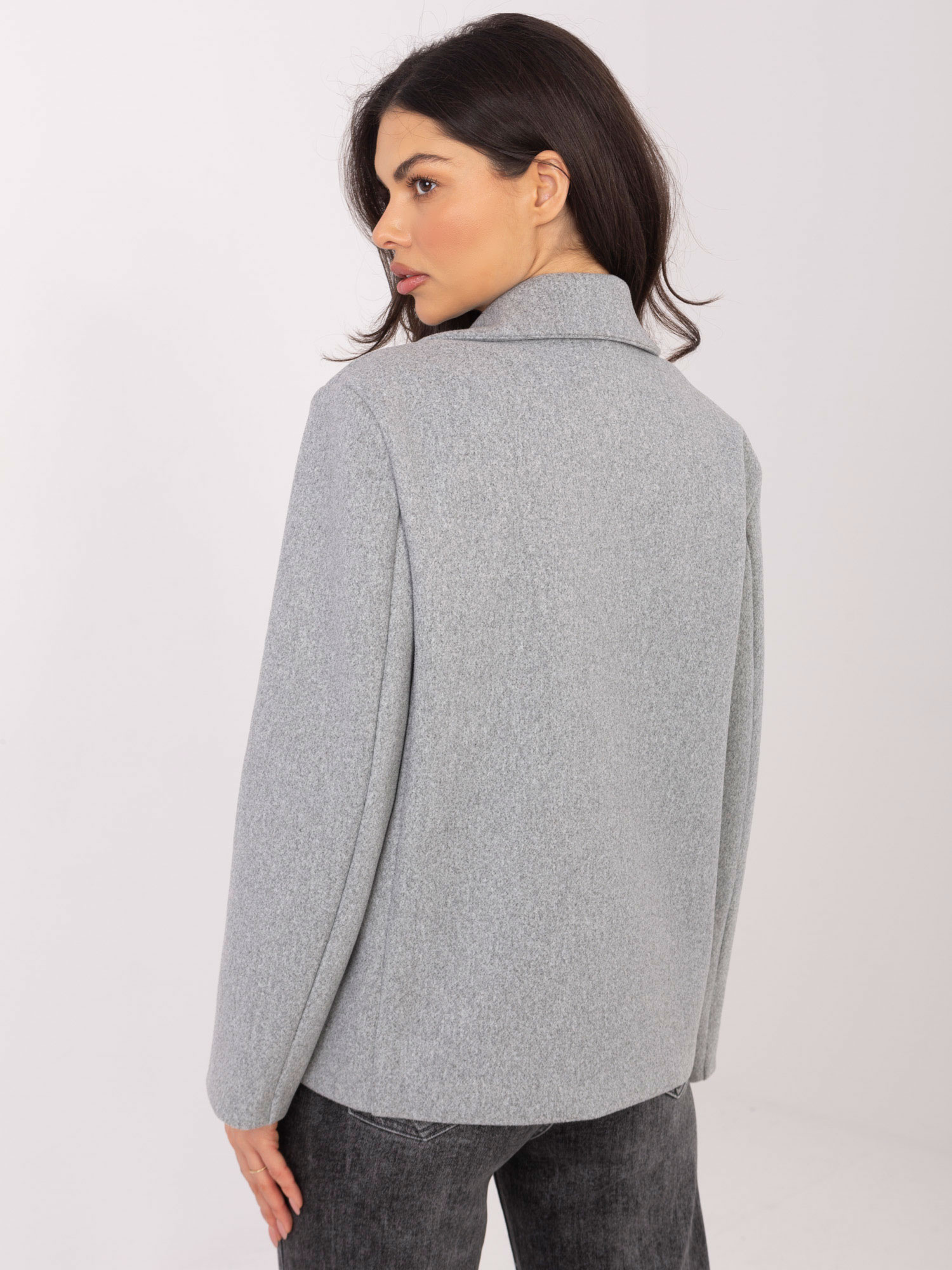 Szary krótki płaszcz dwurzędowym zapięciem RUE PARIS .