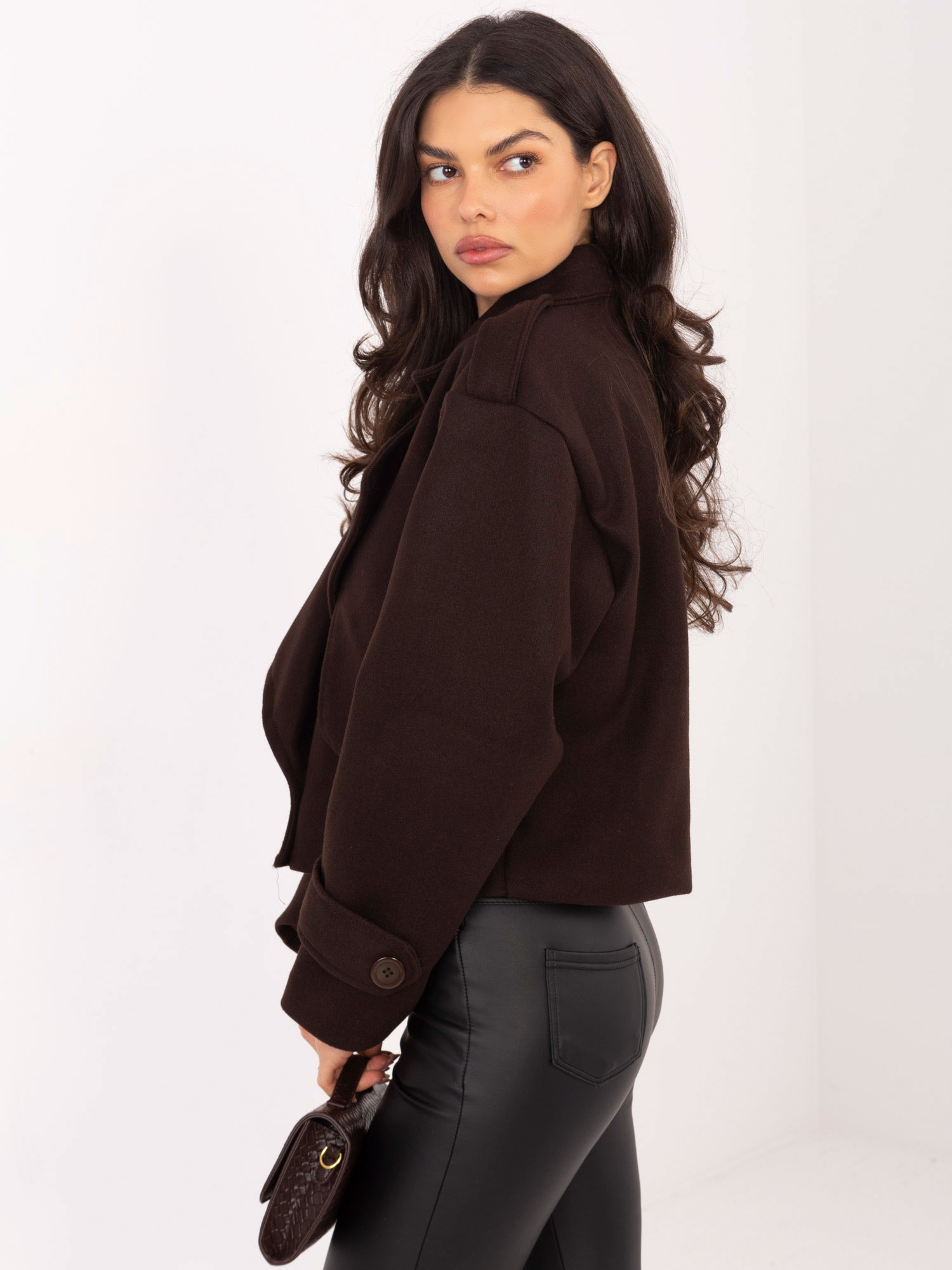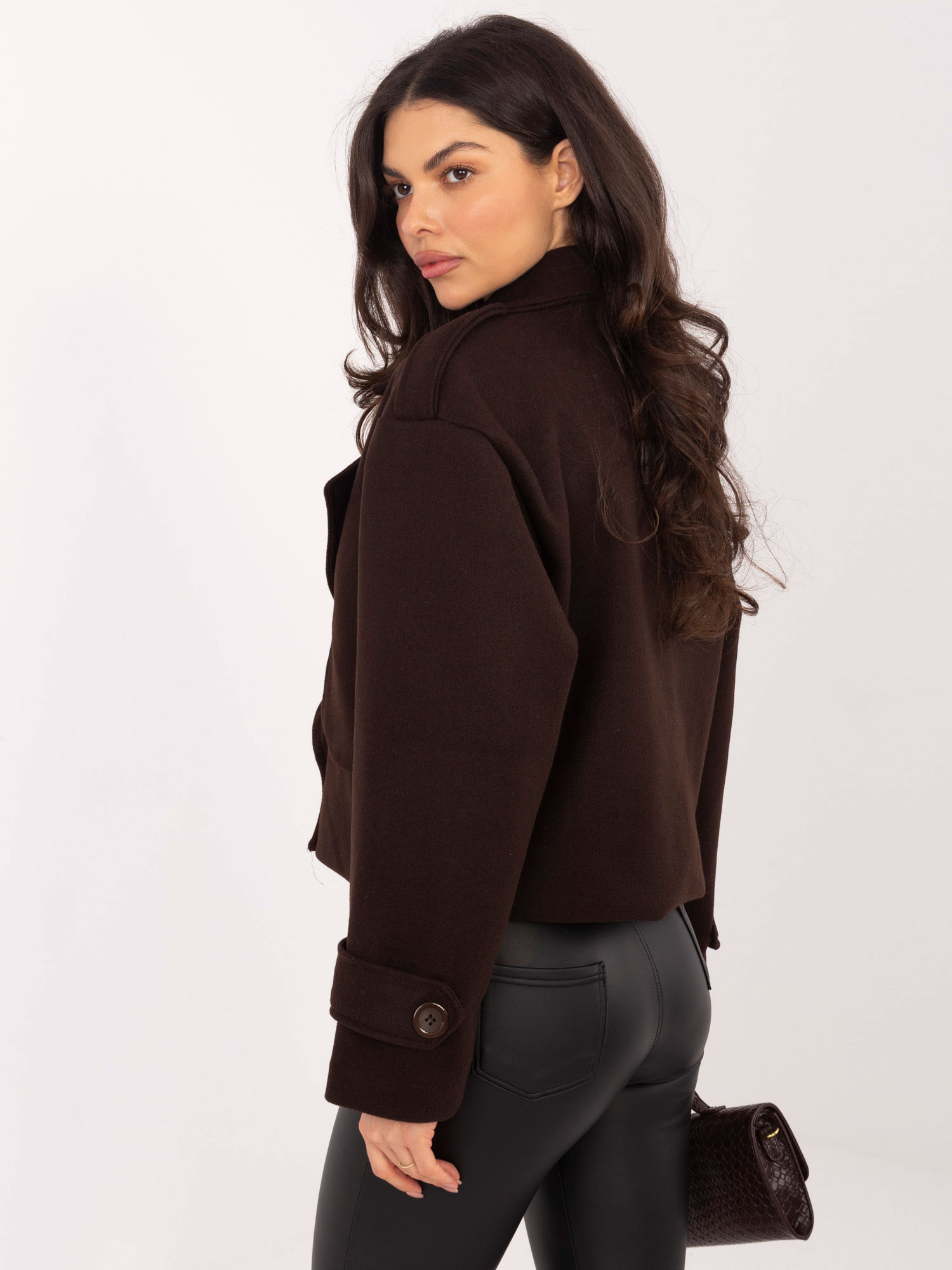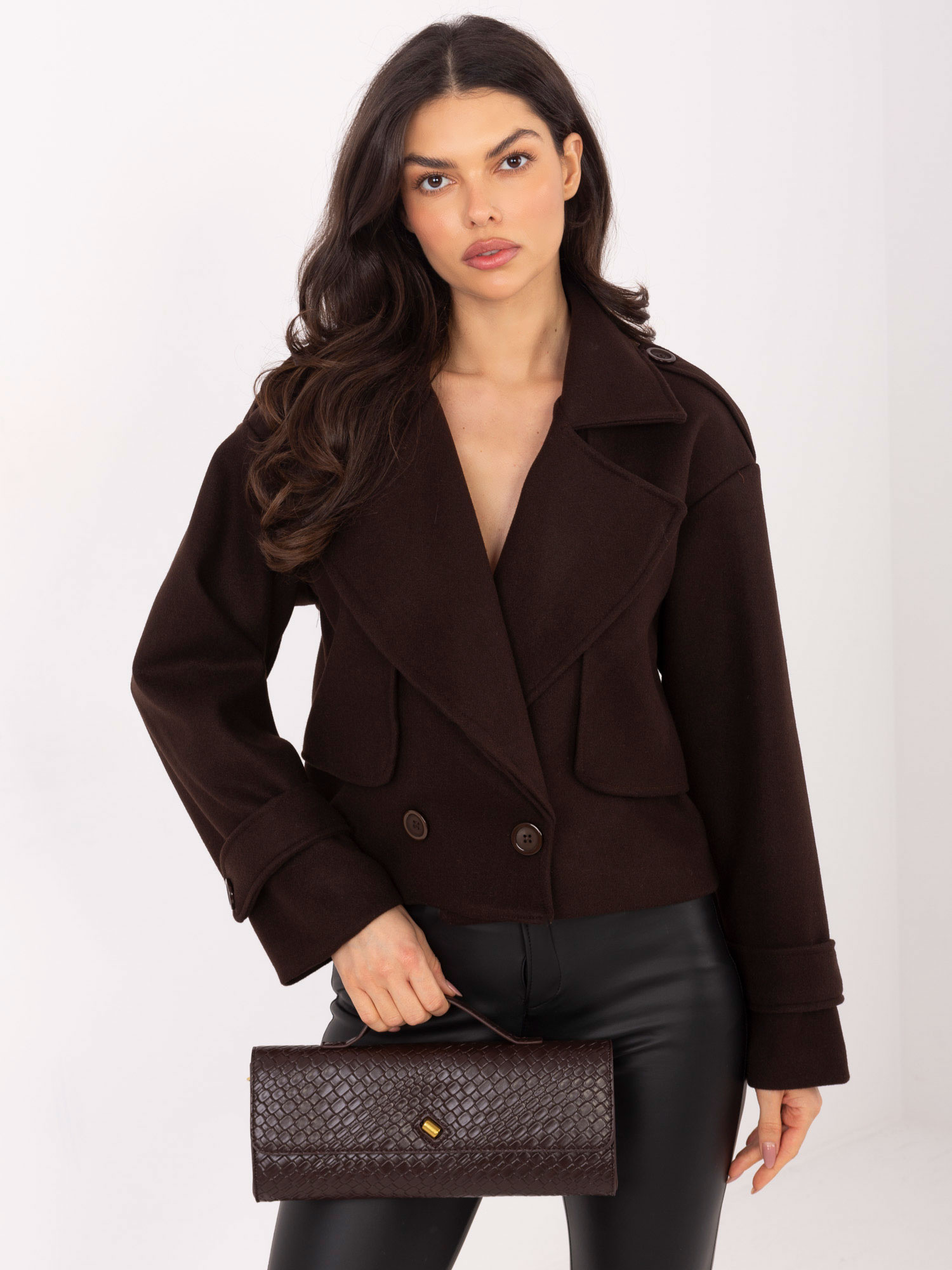 Czekoladowy płaszcz z paskami na rękawach RUE PARIS .