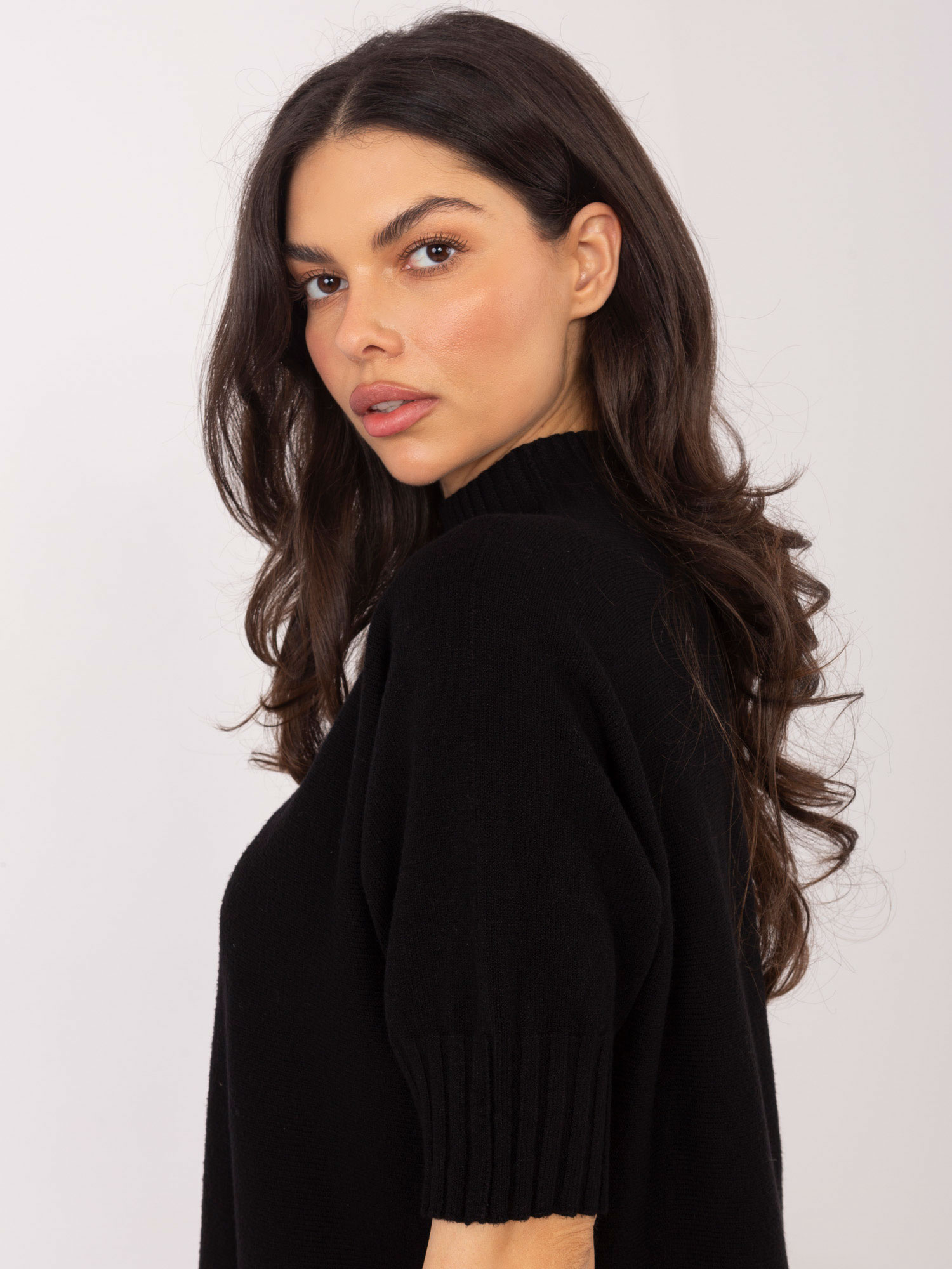 Wymiary swetra w rozmiarze one size mierzone na płasko: szerokość pod pachami - 55 cm, szerokość w biodrach - 57 cm, długość rękawa - 41 cm (od szwu), długość całkowita - 56 cm.