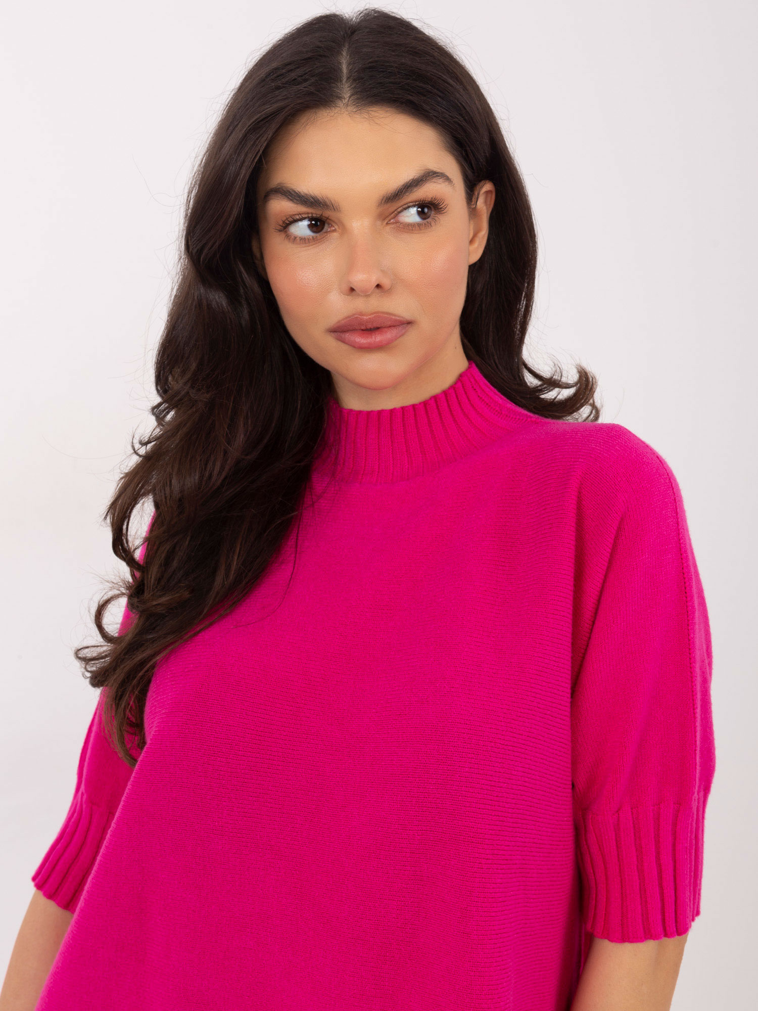 Wymiary swetra w rozmiarze one size mierzone na płasko: szerokość pod pachami - 55 cm, szerokość w biodrach - 57 cm, długość rękawa - 41 cm (od szwu), długość całkowita - 56 cm.