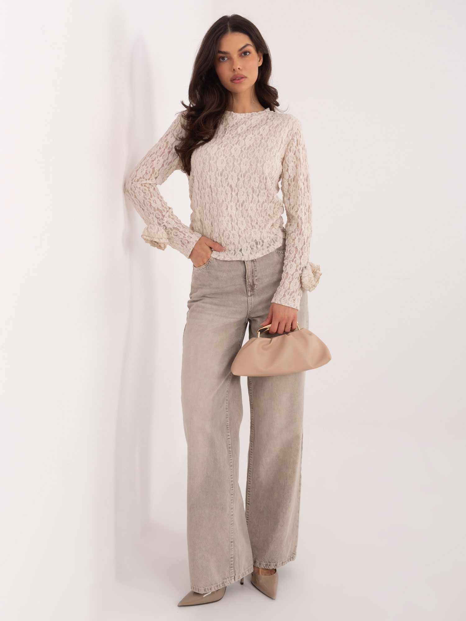 Wymiary bluzki w rozmiarze one size: szerokość pod pachami - 48 cm, szerokość w talii - 38 cm, szerokość w biodrach - 42 cm, długość całkowita - 55 cm.