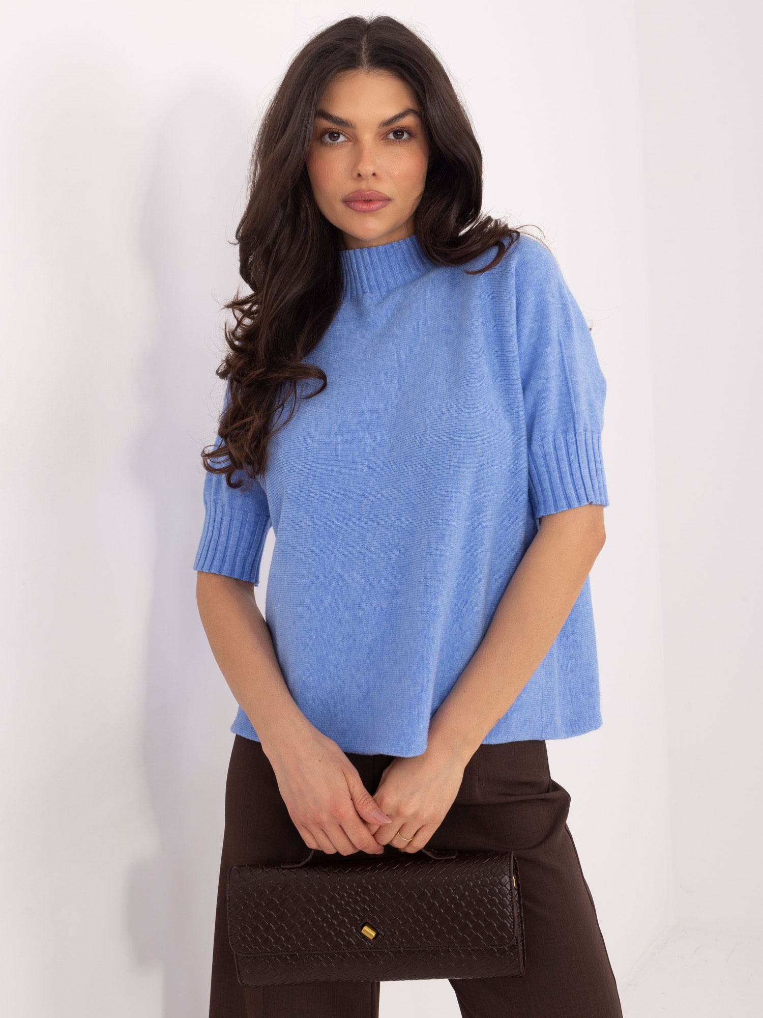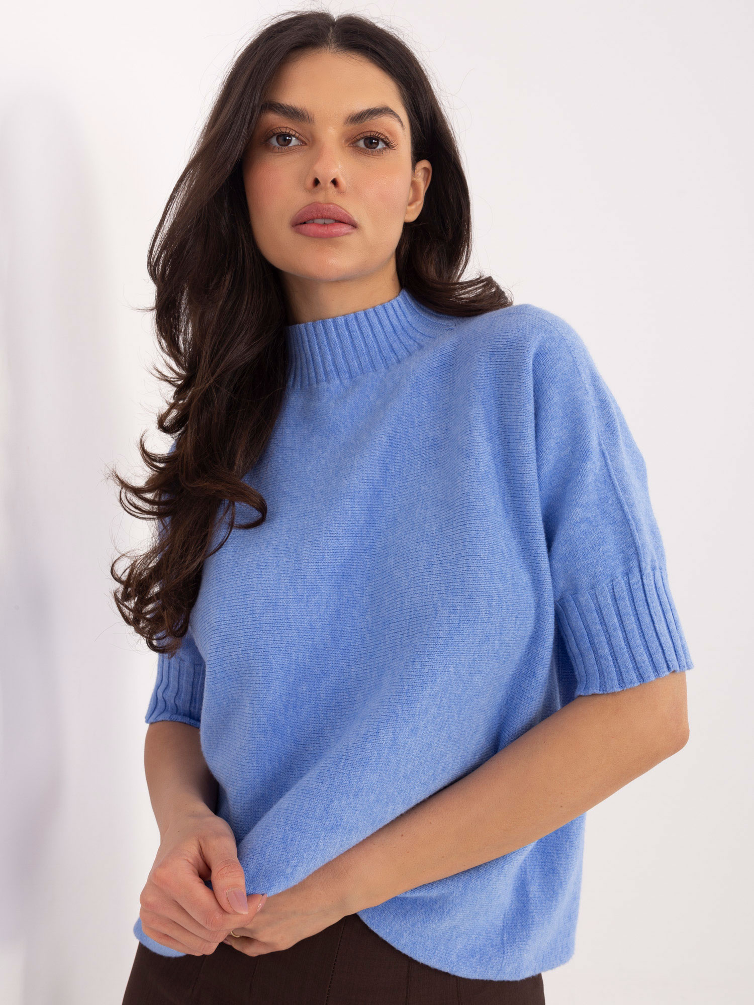 Wymiary swetra w rozmiarze one size mierzone na płasko: szerokość pod pachami - 55 cm, szerokość w biodrach - 57 cm, długość rękawa - 41 cm (od szwu), długość całkowita - 56 cm.
