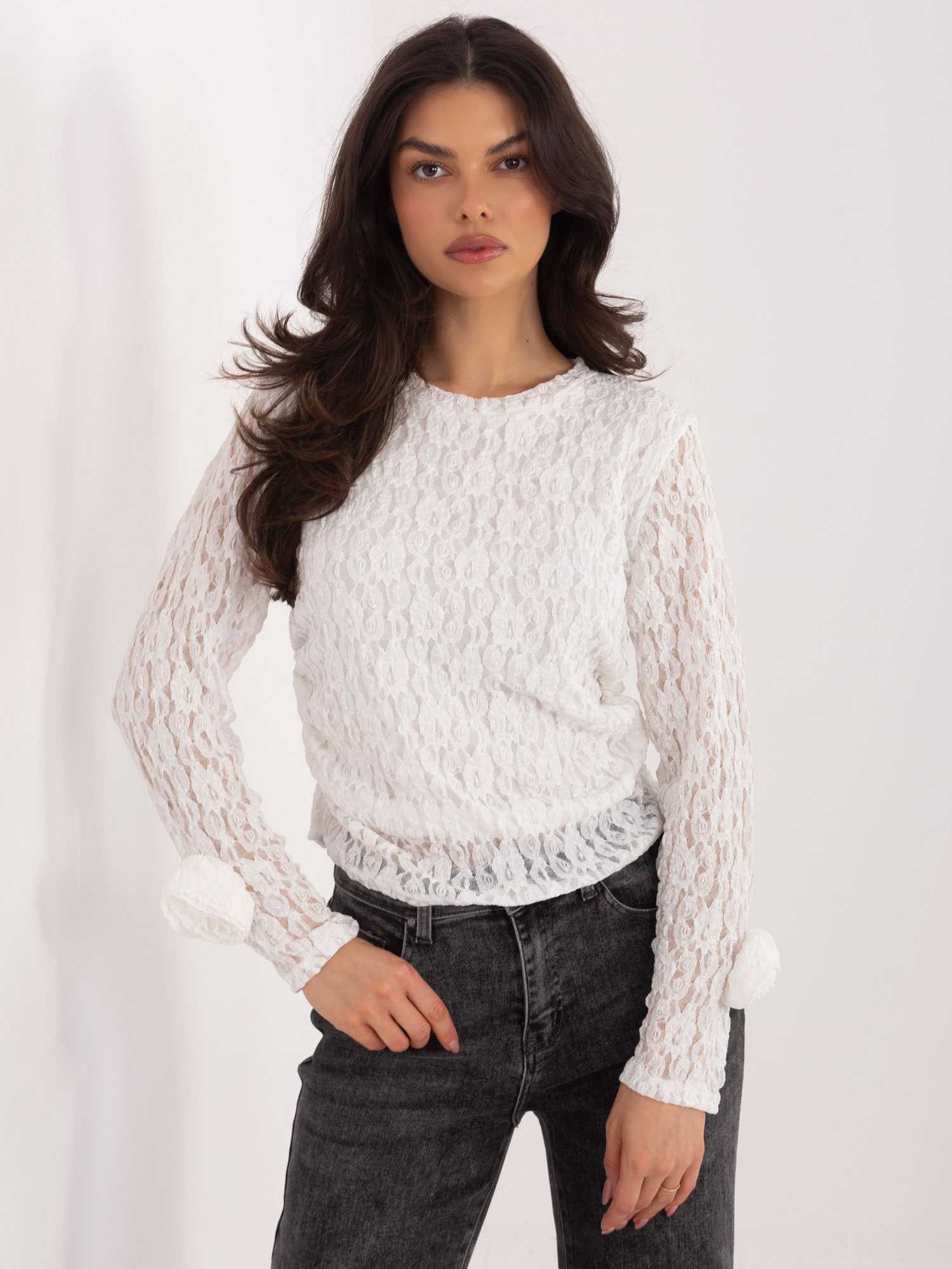 Biała koronkowa bluzka z drapowaniem