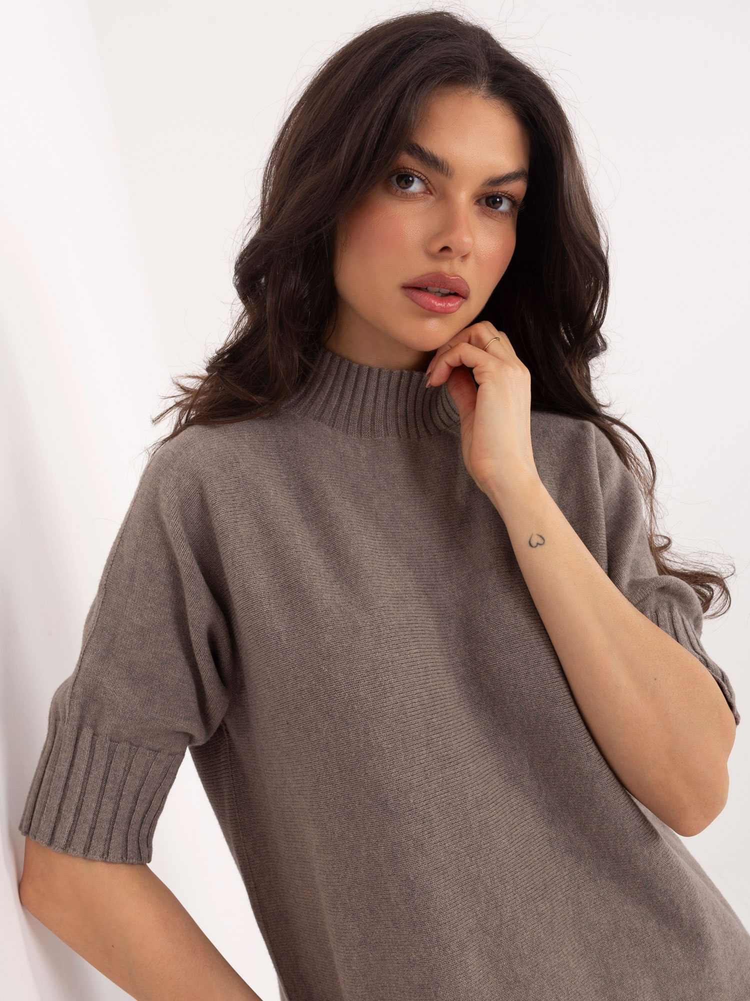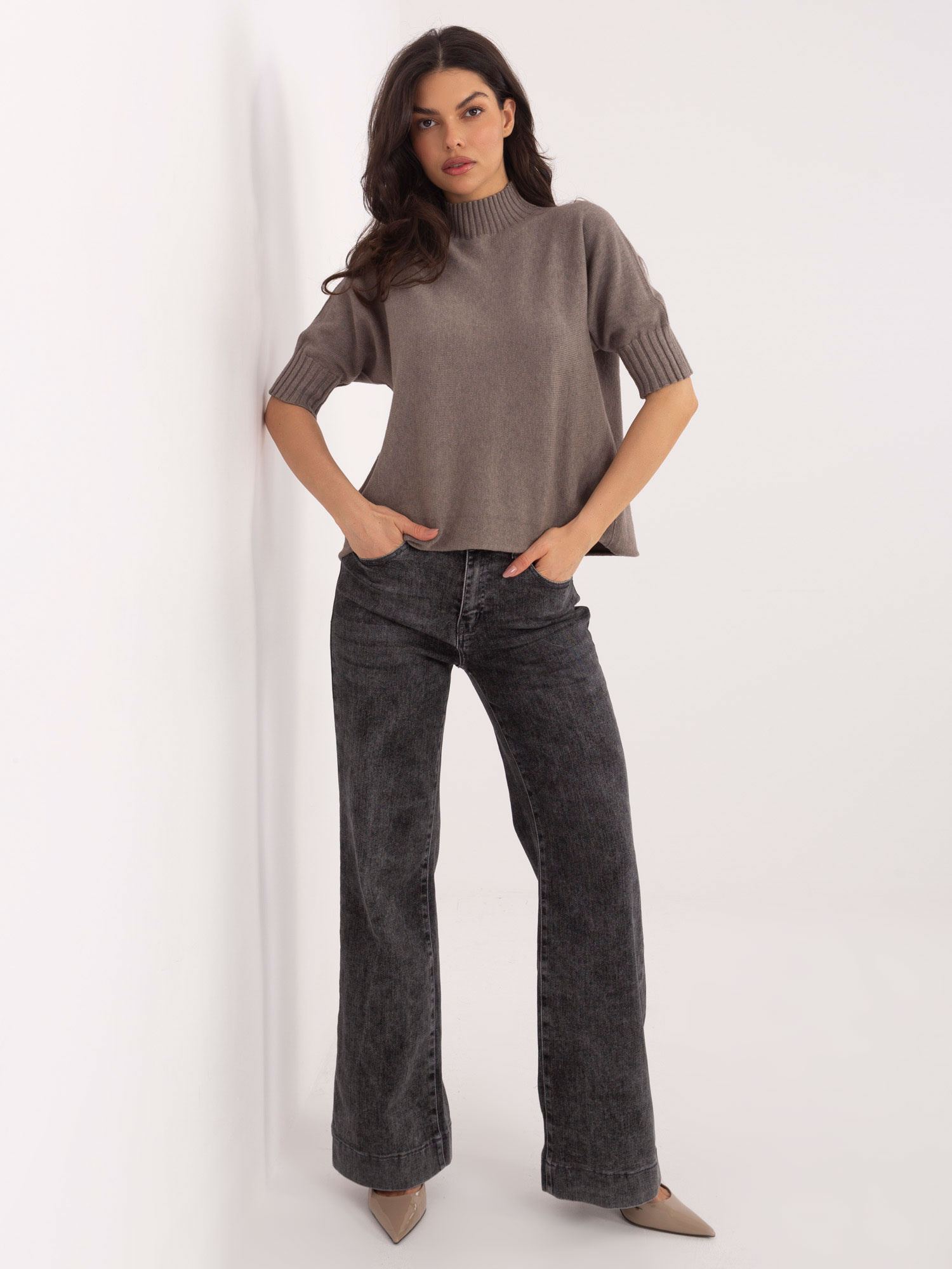Wymiary swetra w rozmiarze one size mierzone na płasko: szerokość pod pachami - 55 cm, szerokość w biodrach - 57 cm, długość rękawa - 41 cm (od szwu), długość całkowita - 56 cm.
