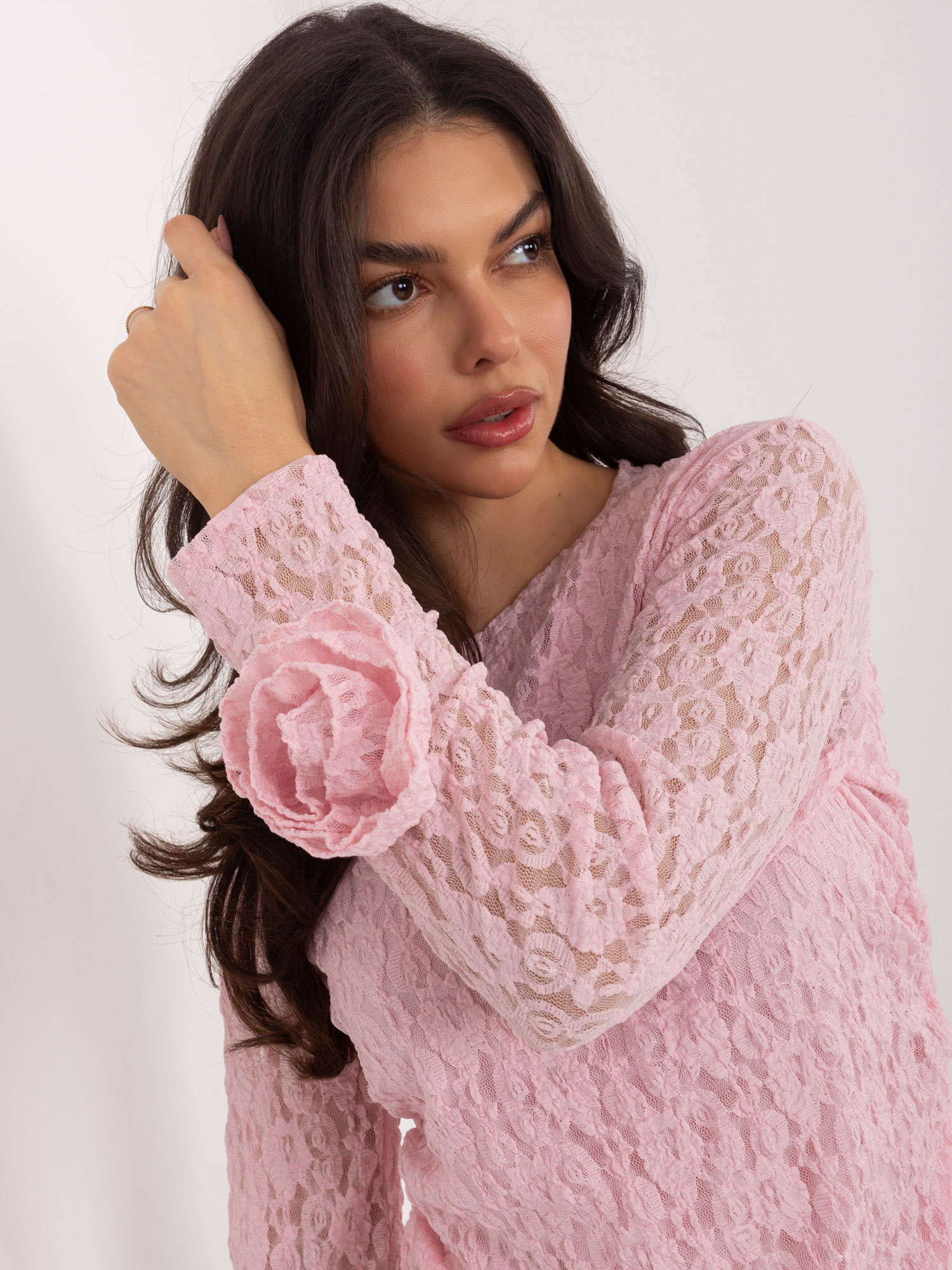 Jasnoróżowa bluzka z ozdobnymi różami