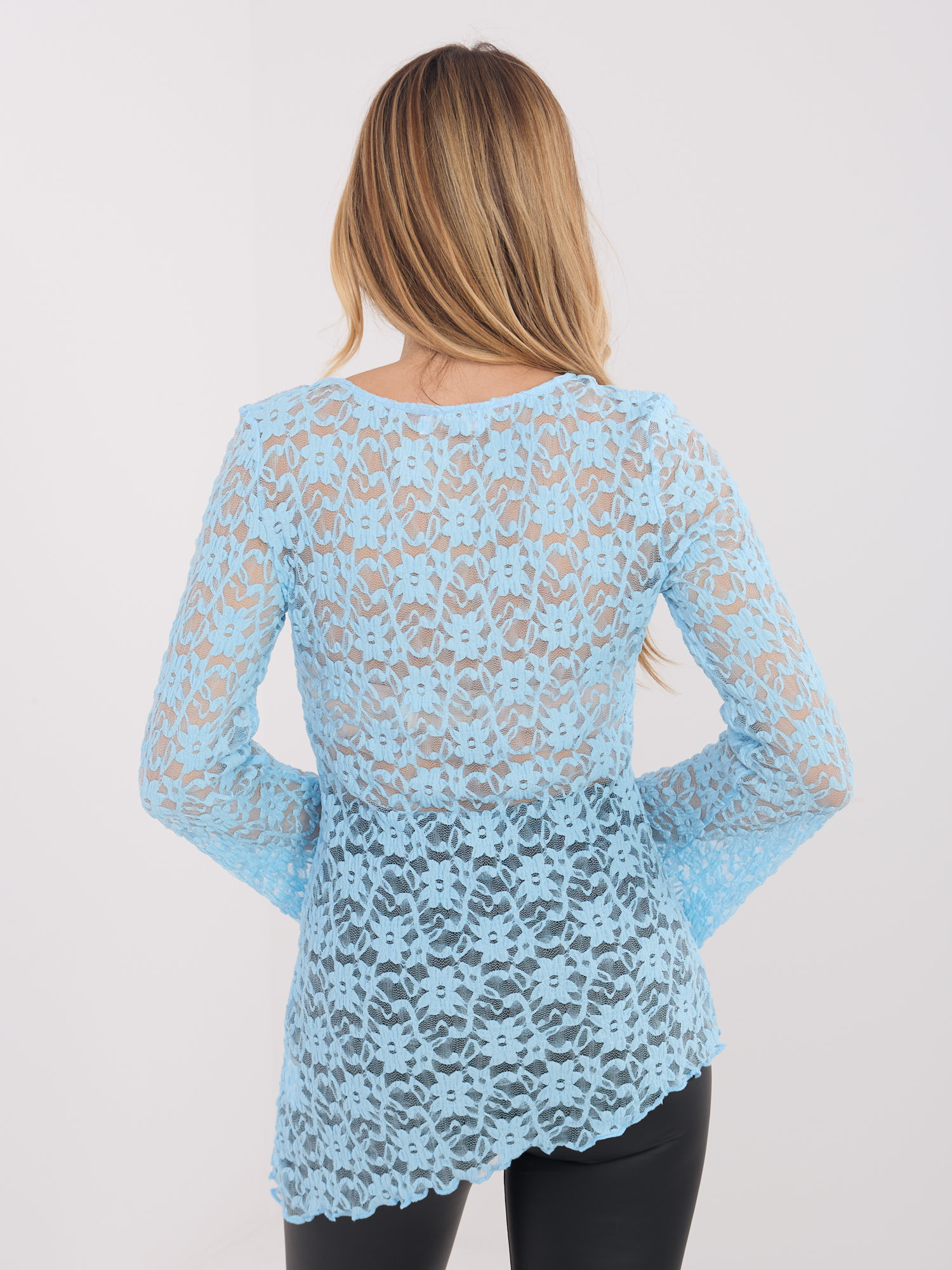 Jasnoniebieska asymetryczna bluzka z koronki