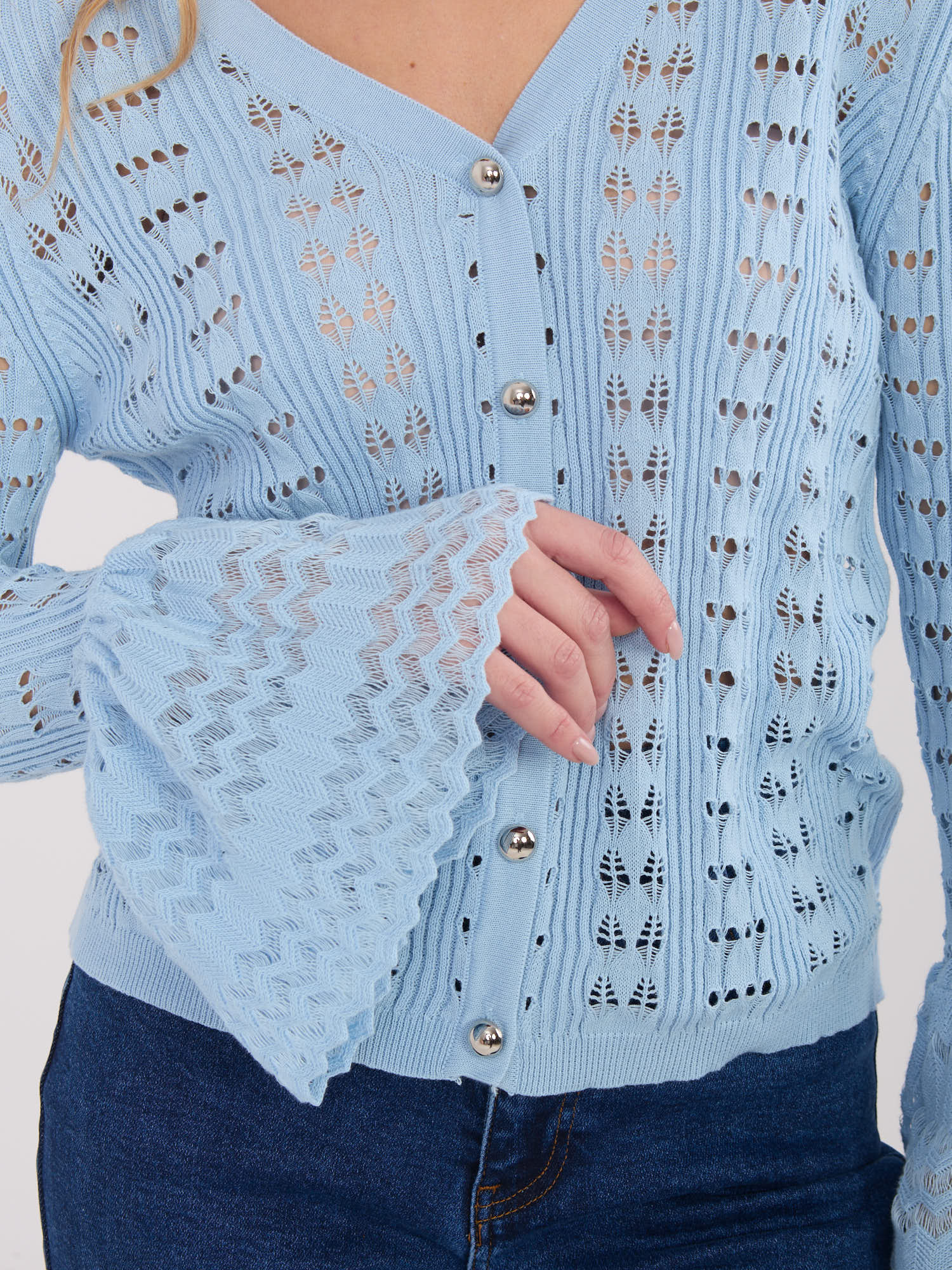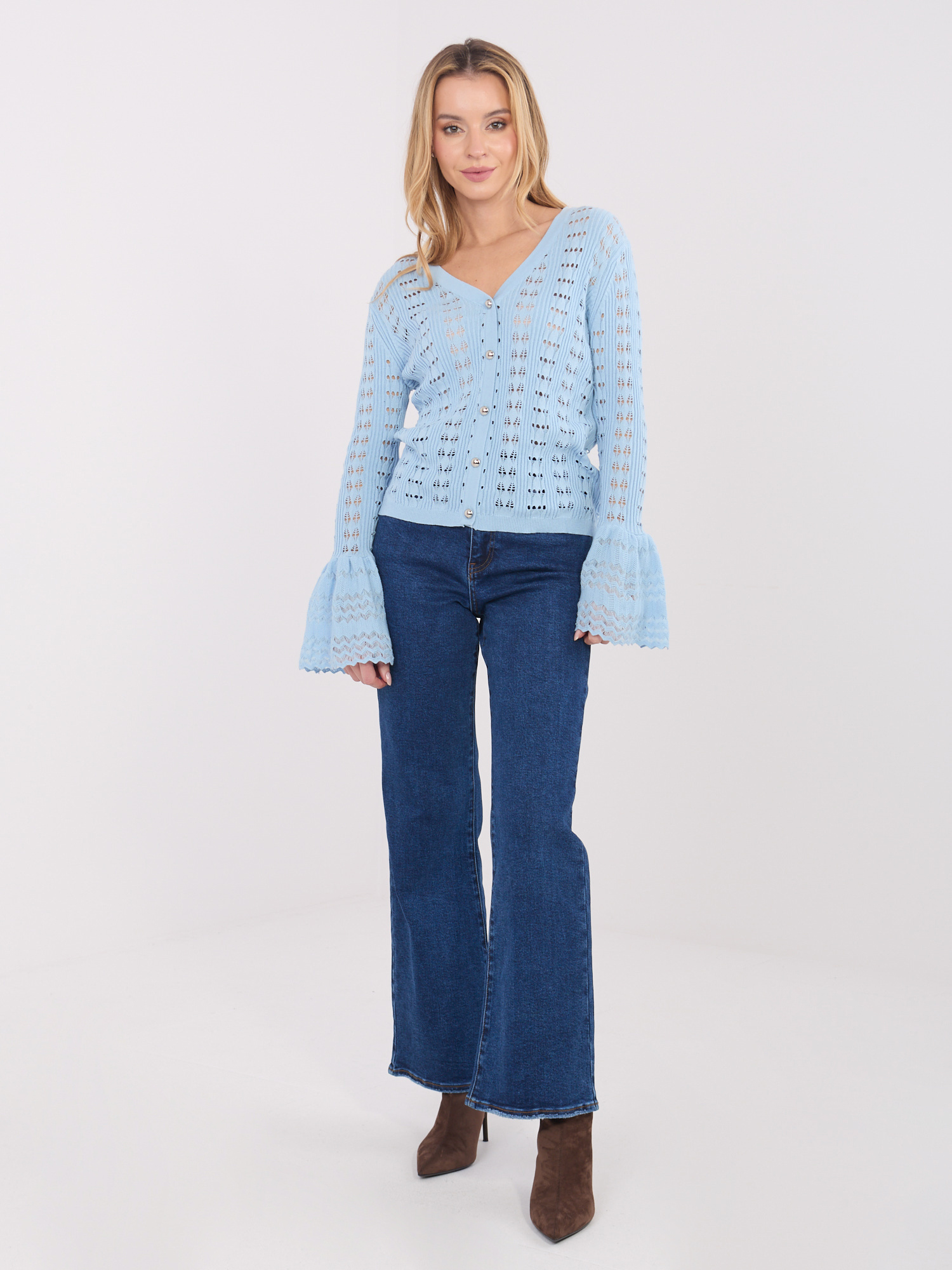 Wymiary swetra w rozmiarze one size mierzone na płasko: szerokość pod pachami - 50 cm, szerokość w biodrach - 43 cm, długość rękawa - 68 cm (od szwu), długość całkowita - 57 cm.
