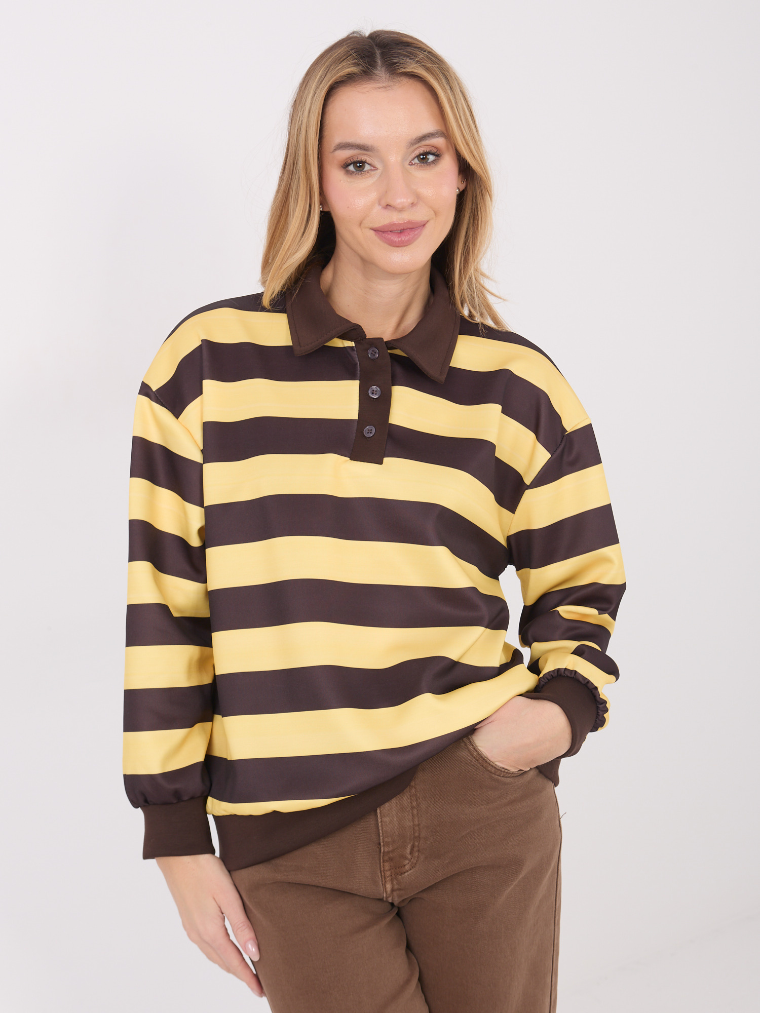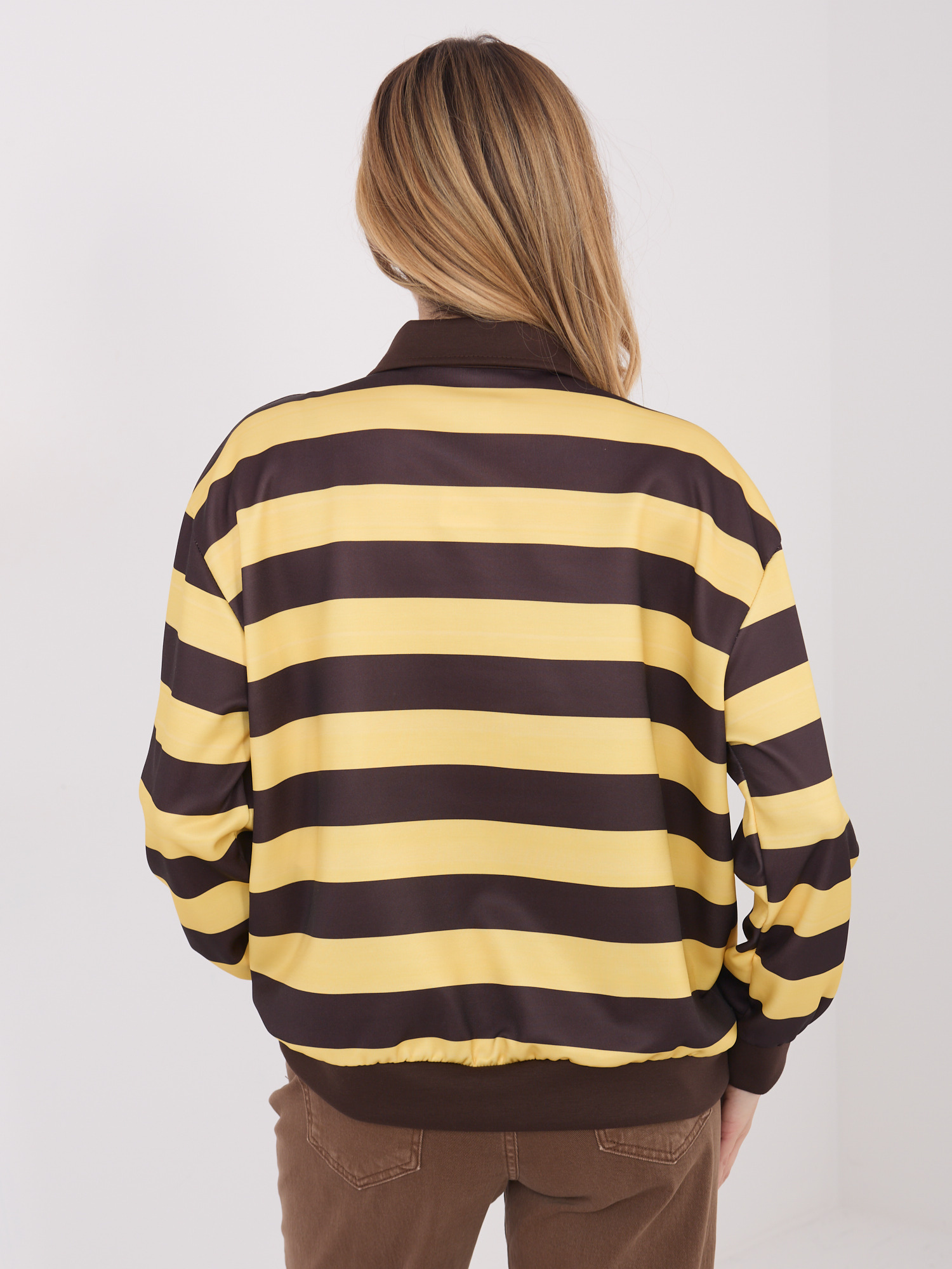 Żółta damska bluza z kołnierzykiem .