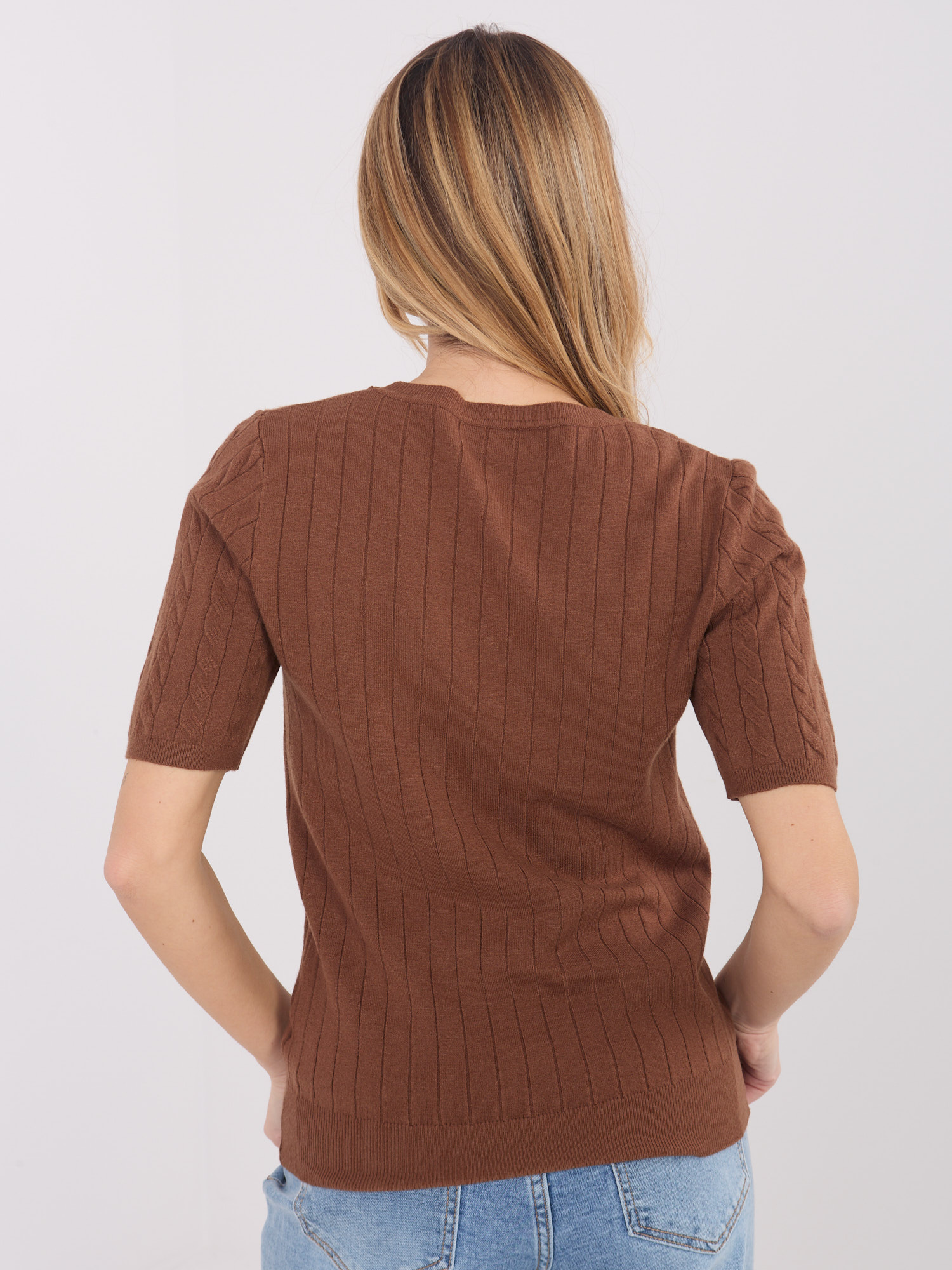 Jasnobrązowy damski sweter z okrągłym dekoltem