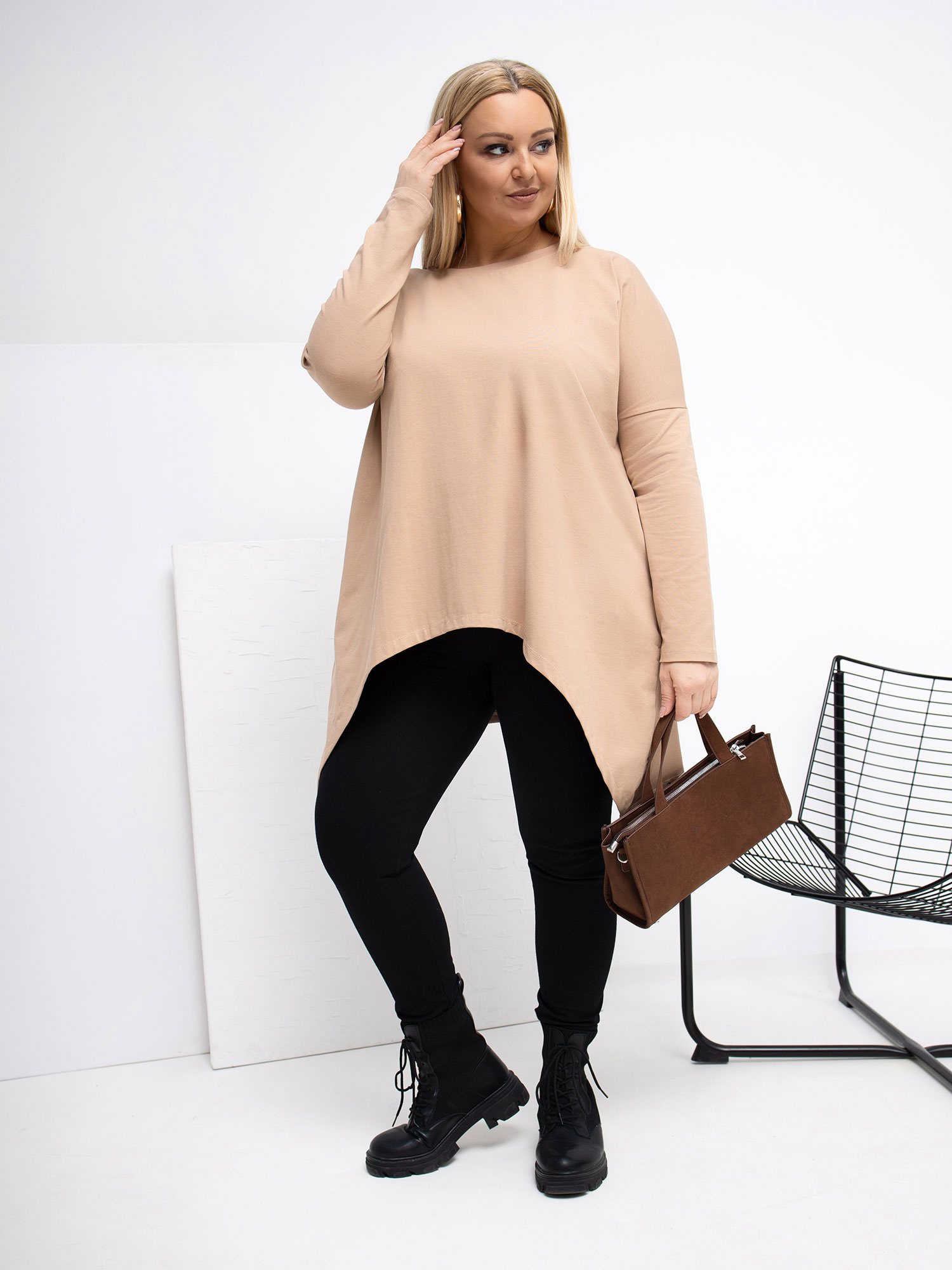 Ciemnobeżowa asymetryczna bluzka plus size .