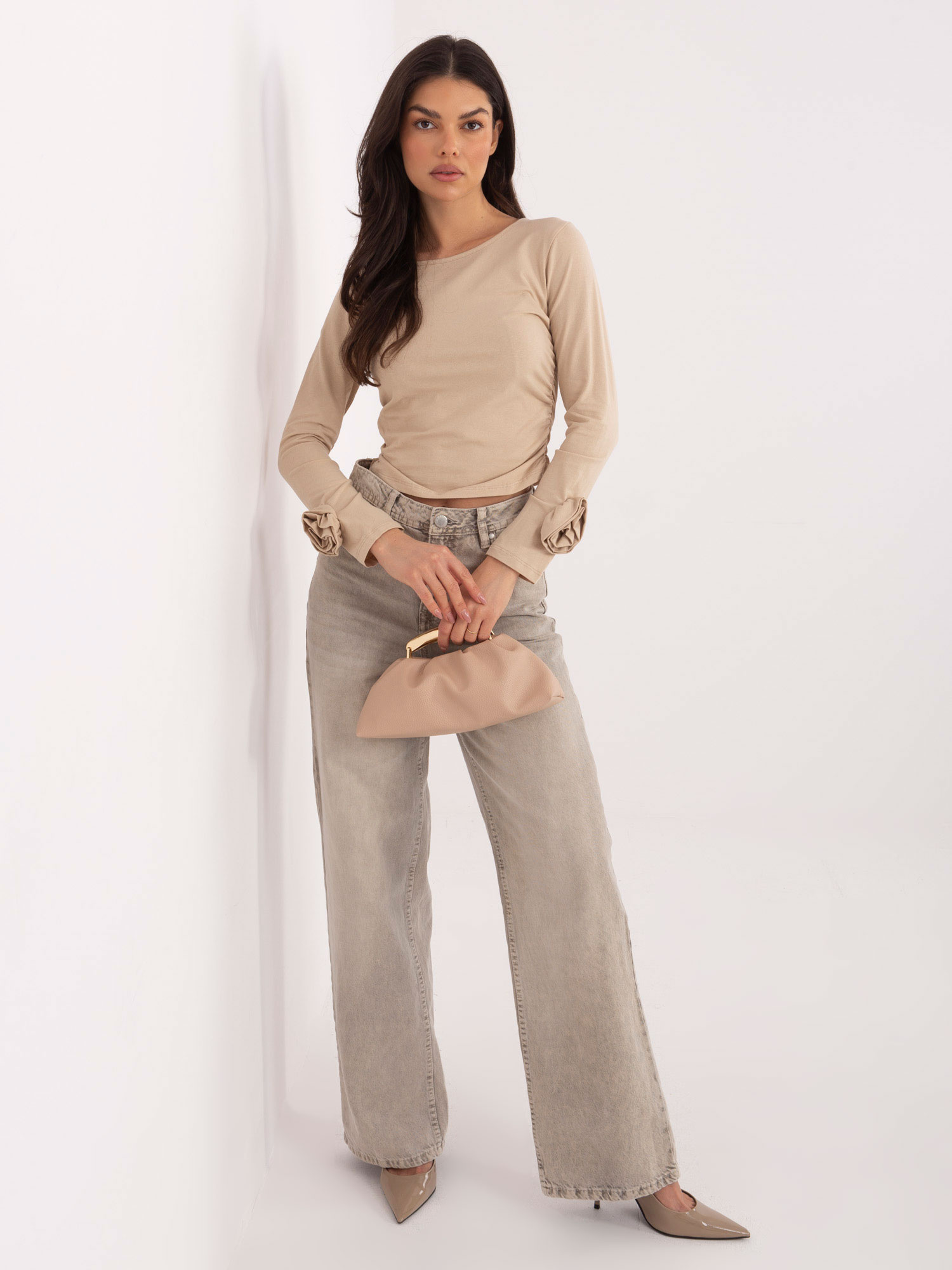 Wymiary bluzki w rozmiarze one size mierzone na płasko: szerokość pod pachami - 42 cm, szerokość na dole - 55 cm, długość całkowita - 51 cm, długość rękawa - 56 cm.