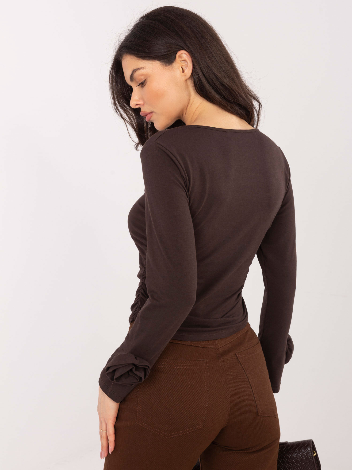 Wymiary bluzki w rozmiarze one size mierzone na płasko: szerokość pod pachami - 42 cm, szerokość na dole - 55 cm, długość całkowita - 51 cm, długość rękawa - 56 cm.
