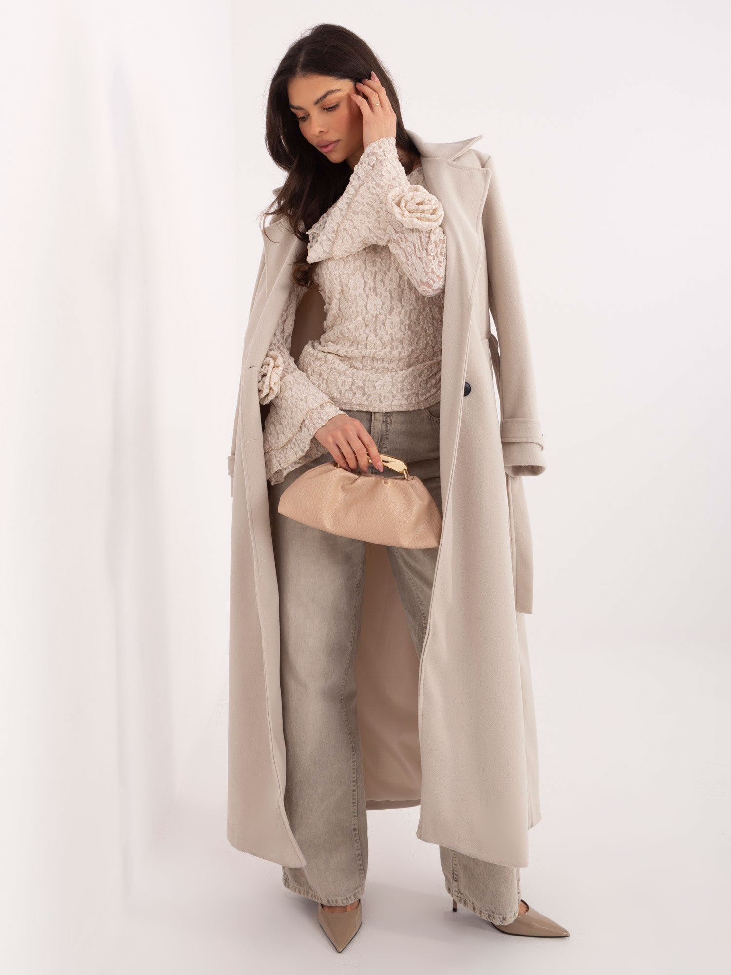 Jasnobeżowa koronkowa bluzka z drapowaniem