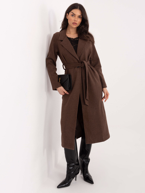 Brązowy płaszcz z wiązanym paskiem OCH BELLA .