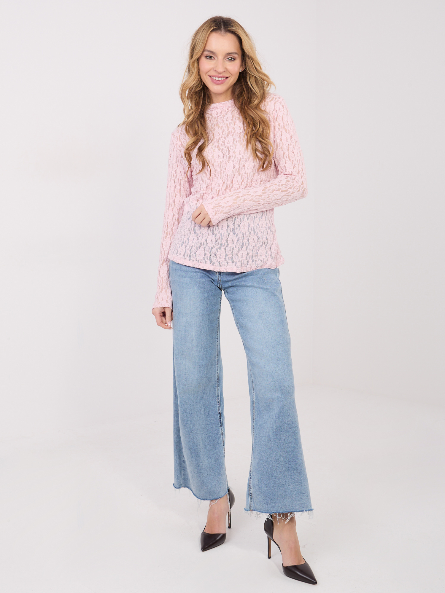 Jasnoróżowa koronkowa bluzka z dekoltem w łódkę