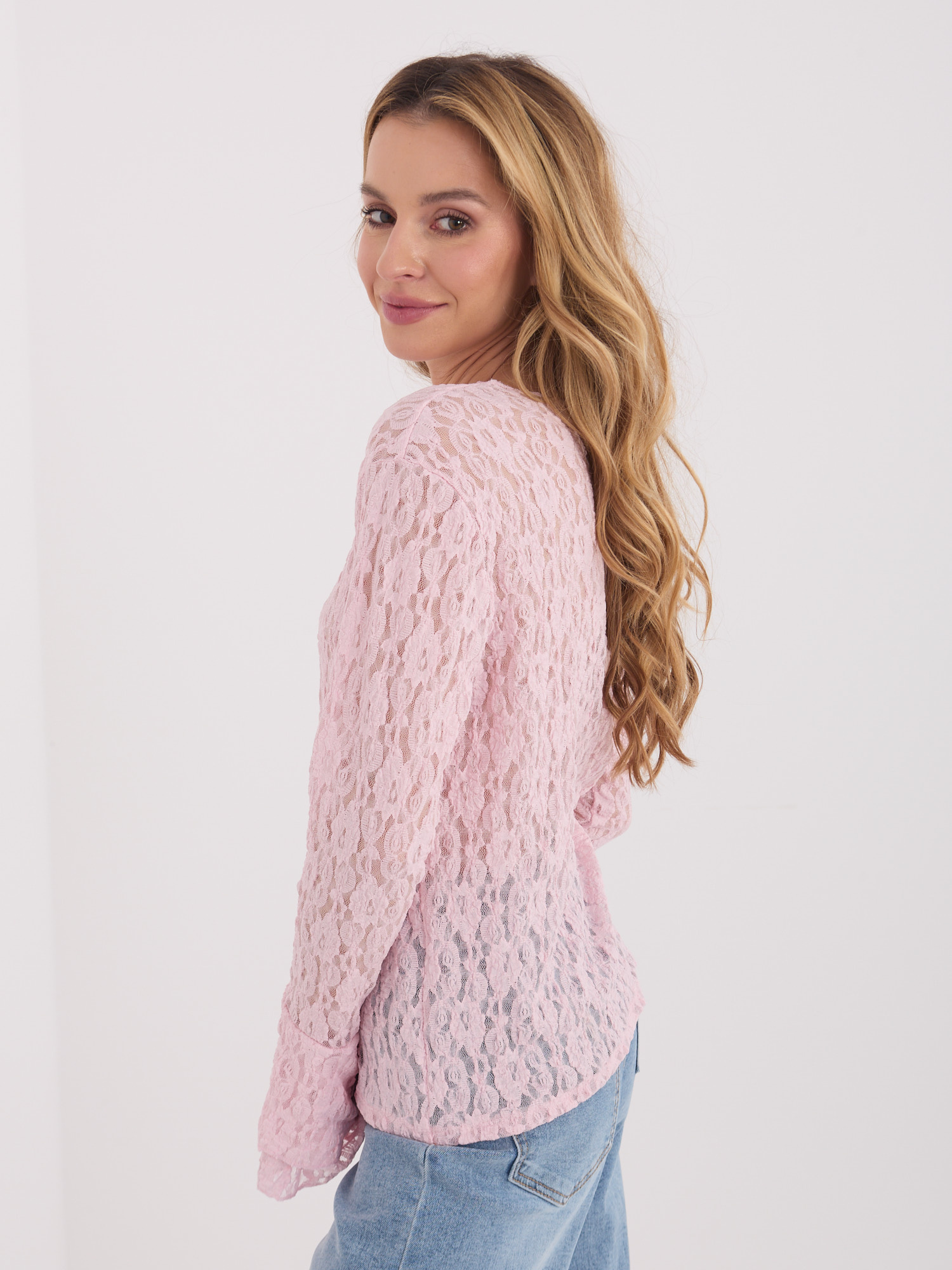 Jasnoróżowa damska bluzka z dekoltem w łódkę