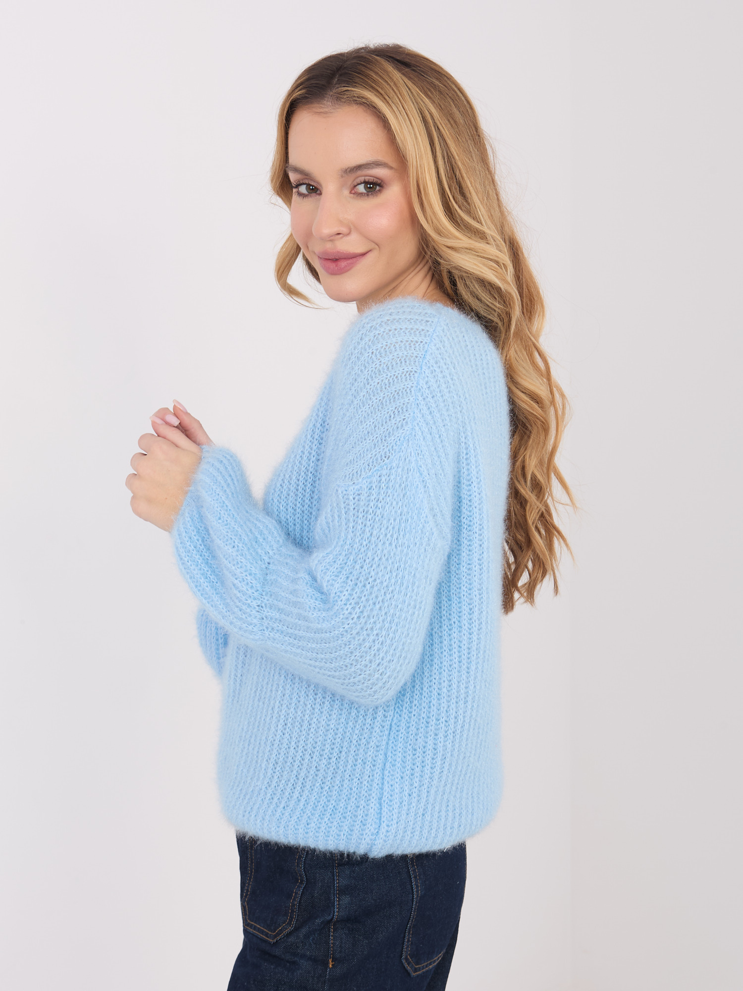 Jasnoniebieski damski sweter z okrągłym dekoltem