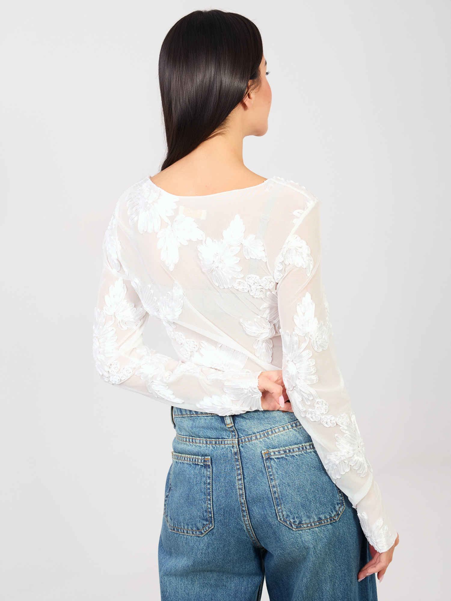 Biała dopasowana bluzka z siateczki