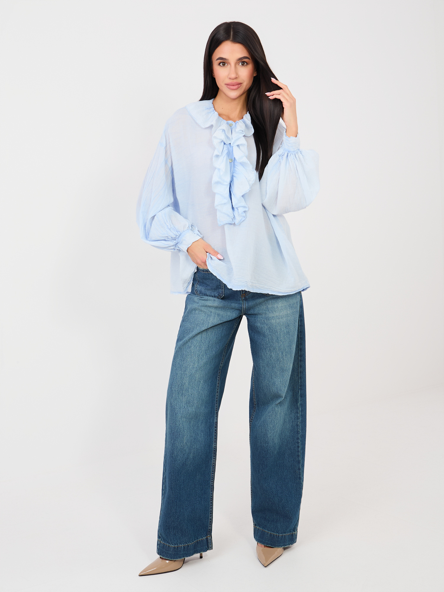 Jasnoniebieska koszulowa bluzka w stylu boho