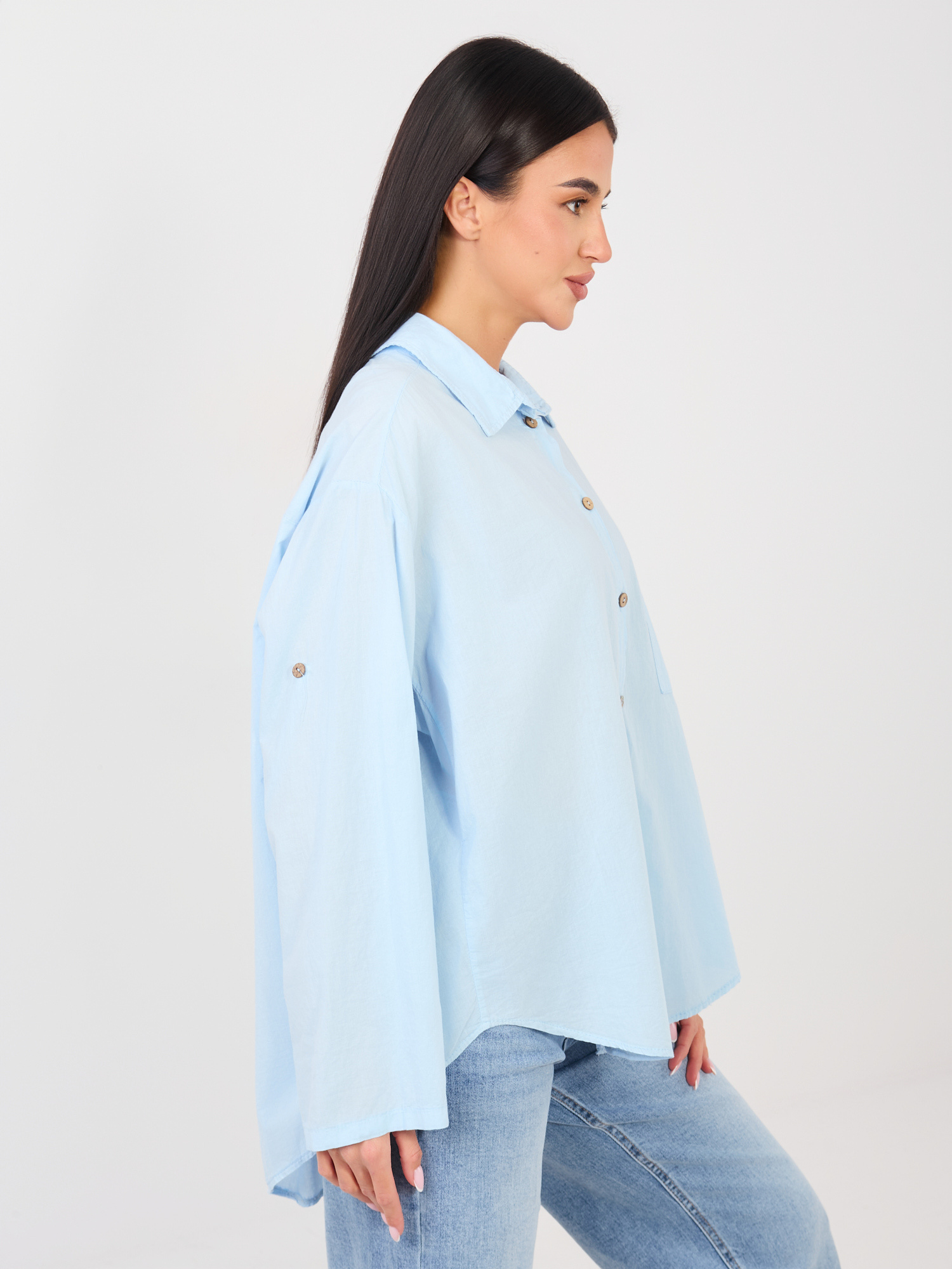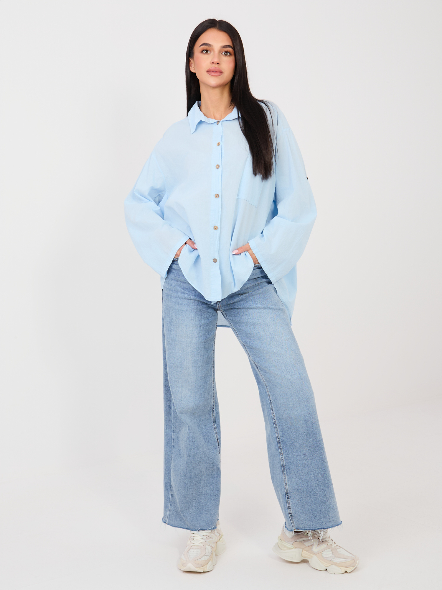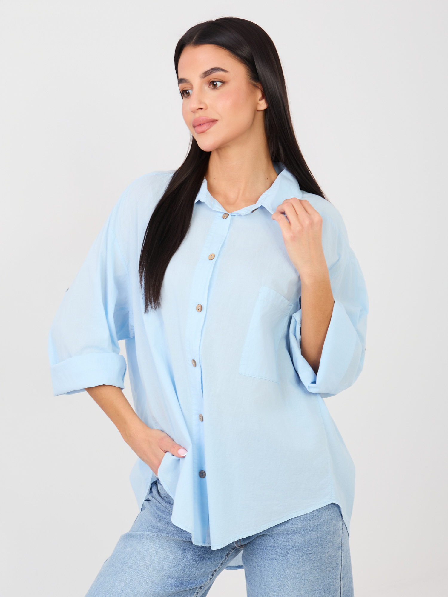 Jasnoniebieska bawełniana koszula z kieszenią .