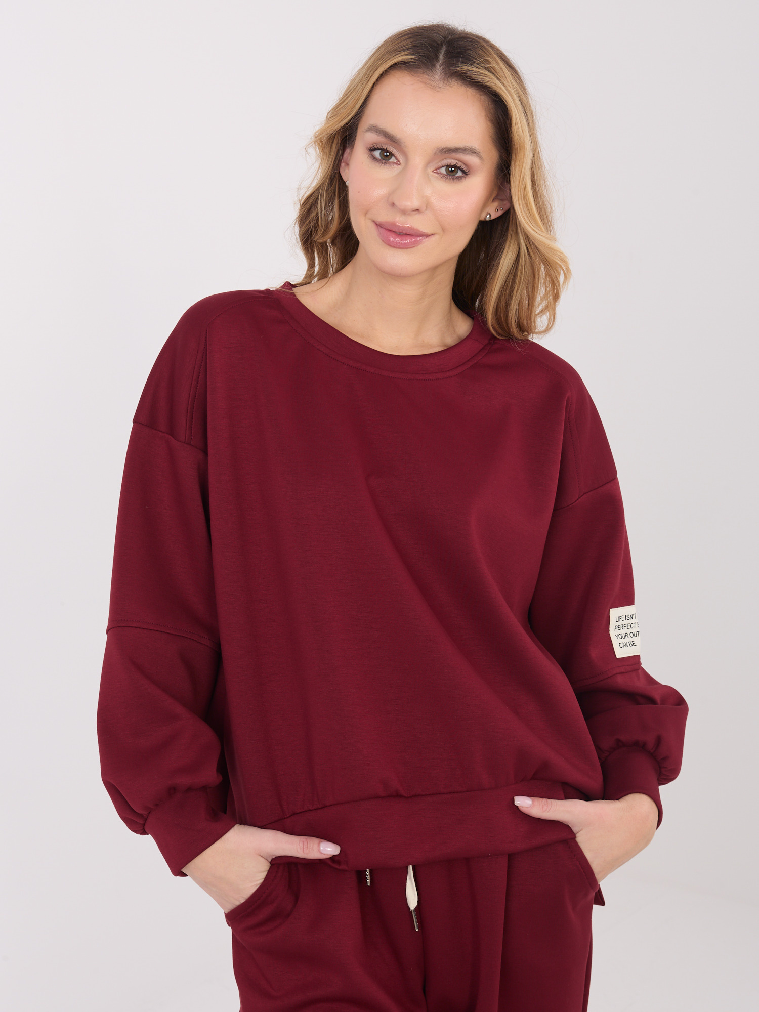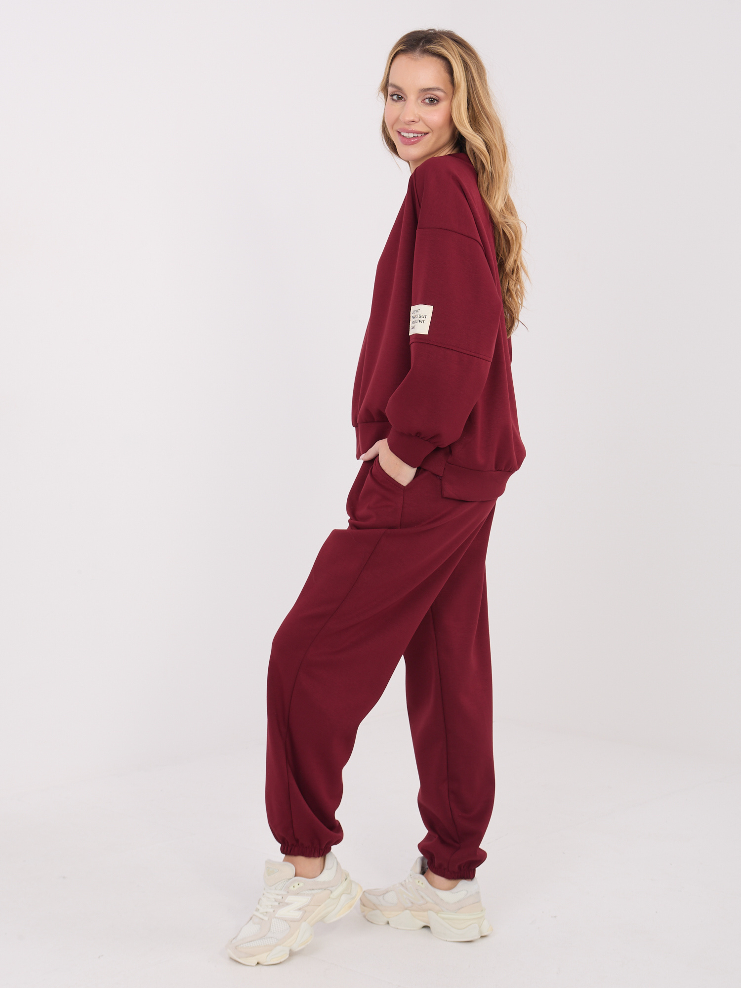Bordowy komplet ze spodniami joggerami