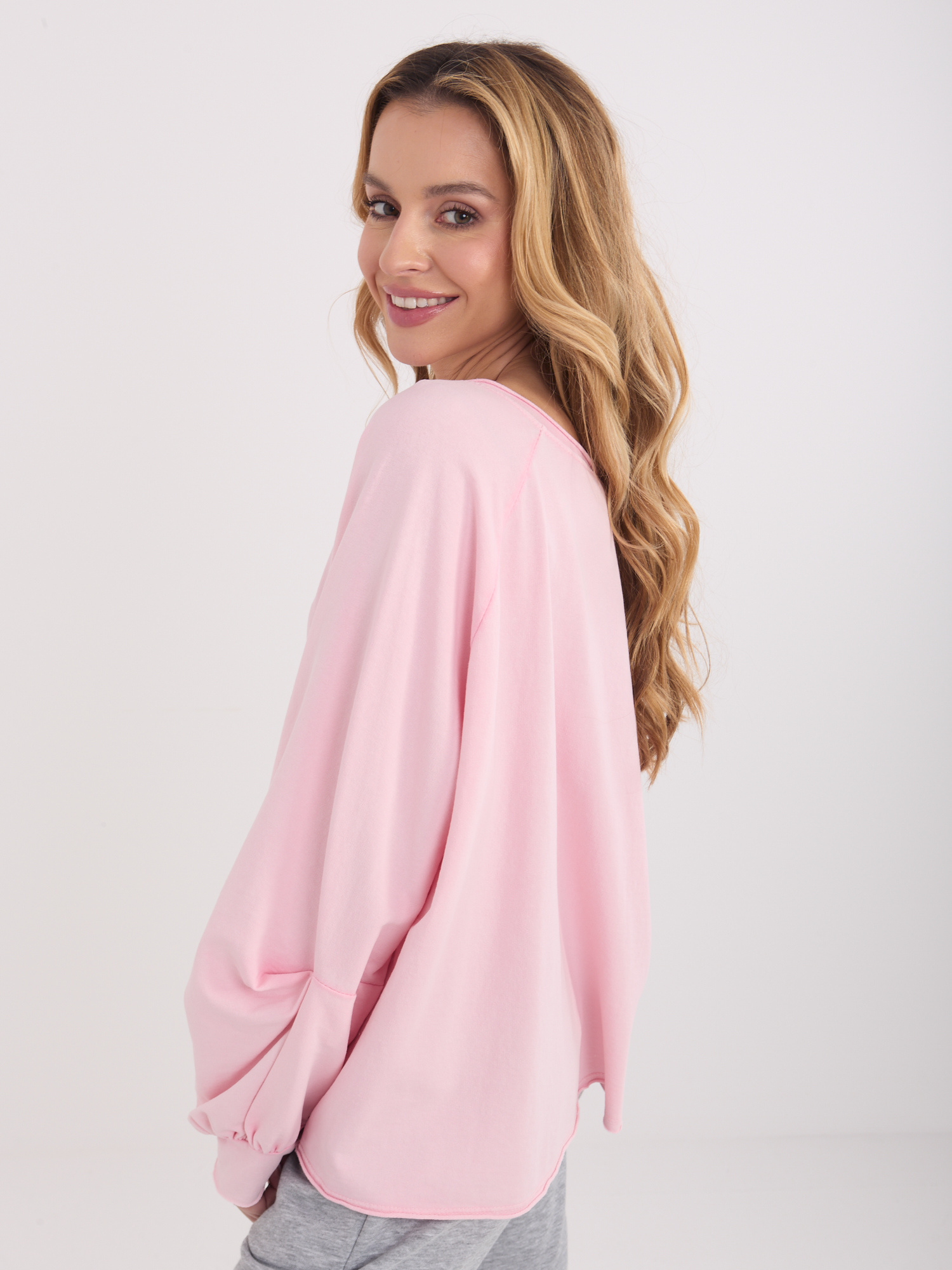 Jasnoróżowa bawełniana bluzka oversize