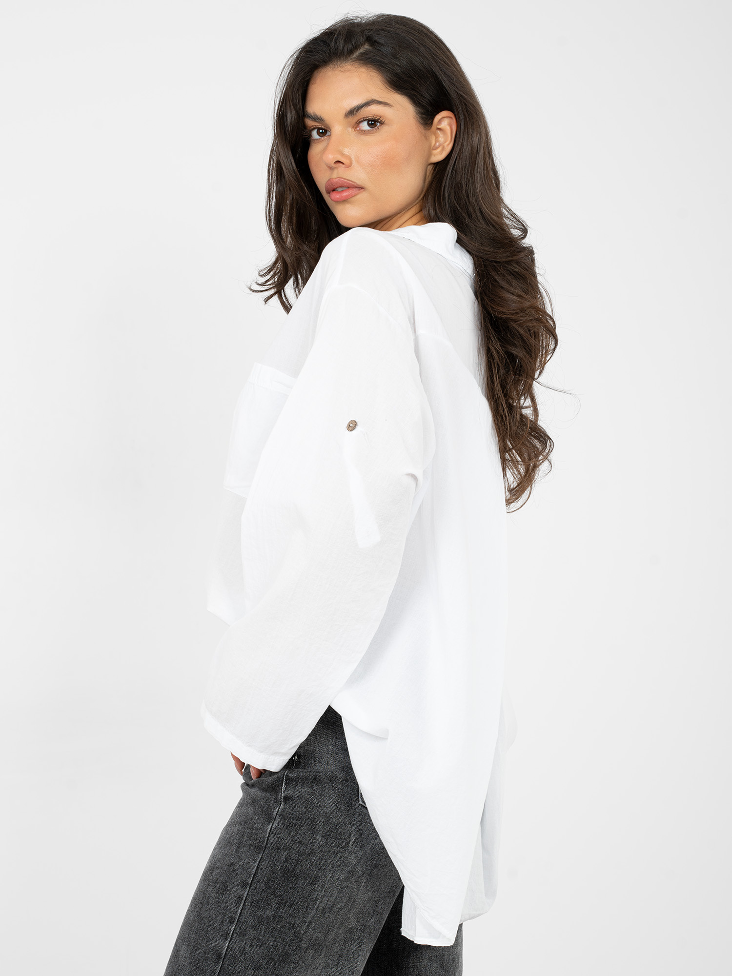 Biała damska koszula z dłuższym tyłem