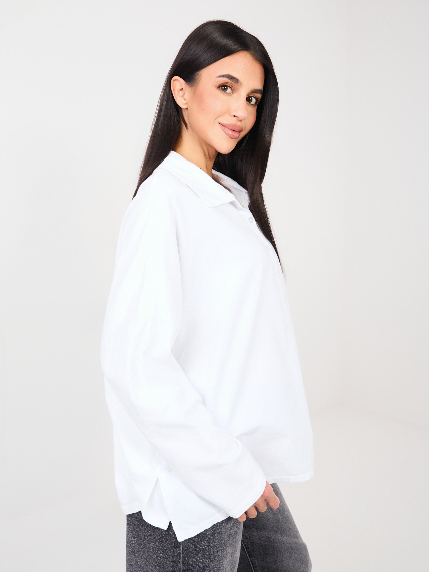 Biała sztruksowa bluzka z guzikami
