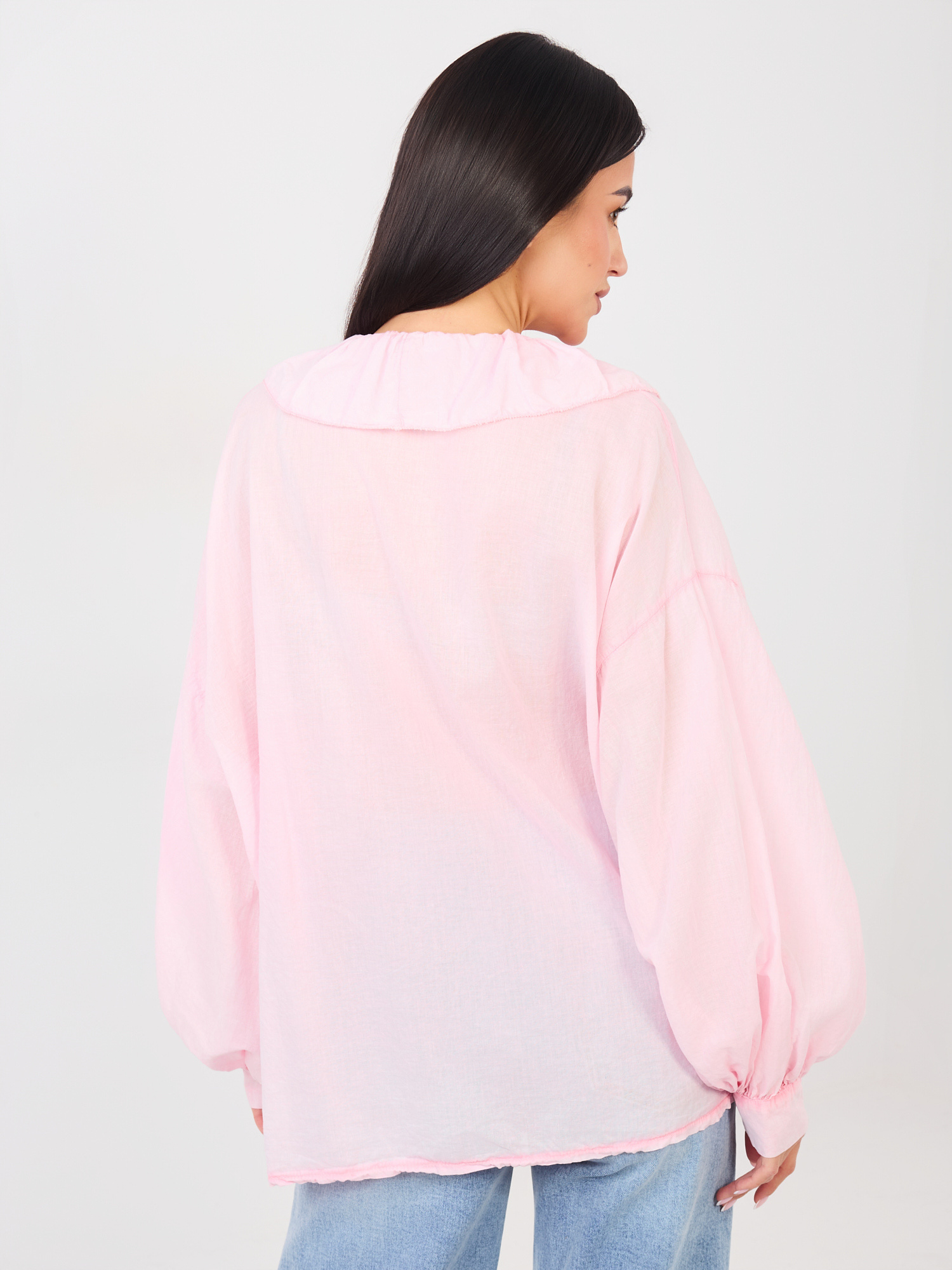 Jasnoróżowa damska bluzka z bufiastymi rękawami